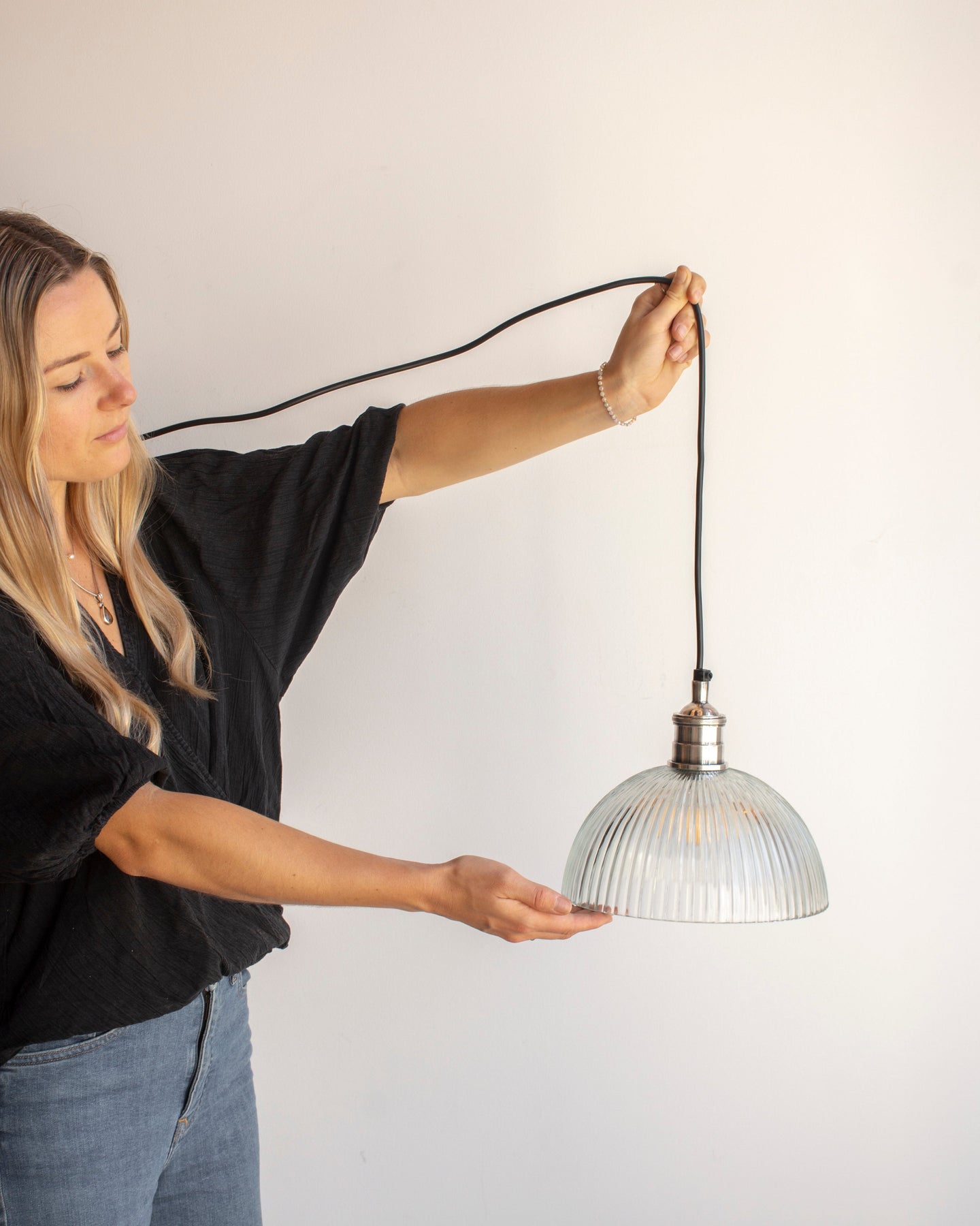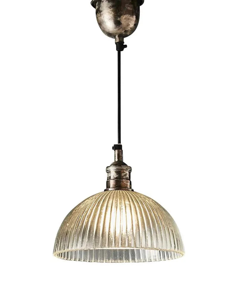 The Antique Pendant Antique Silver brings a touch of vintage character to modern and classic interiors alike. Crafted from hand-blown ribbed mercury glass, its dome-shaped form creates a gentle shimmer that reflects light in a beautifully textured way. The antique silver finish enhances its aged appeal, giving the pendant a distinctive, atmospheric presence whether styled on its own or in a series.