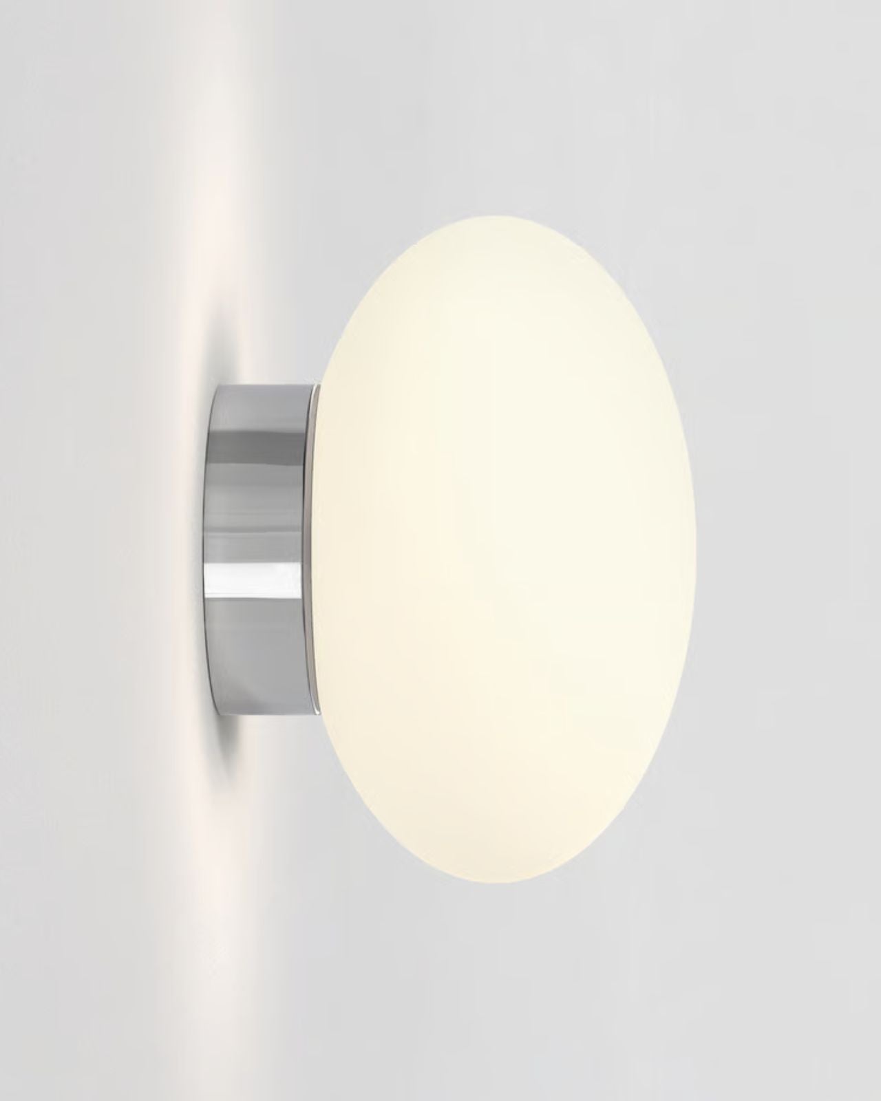 A stunning yet simple wall light consisting of a glowing white orb made of White Glass with a choice of either a Polished Chrome or Matte Black wall base that diffuses a soft and gentle light onto its surrounding environment. An on-trend, understated piece that will fit in perfectly, wherever you choose to put it.