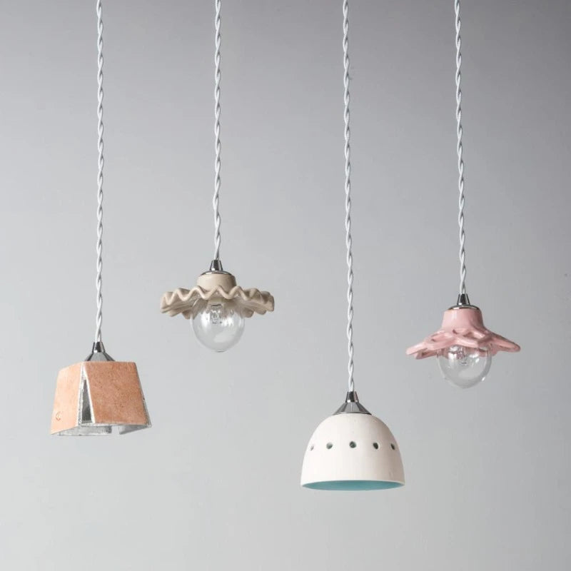 Handmade in Italy this pendant's delicate form is suited for a range of interiors, defined to illuminate every corner of a room while taking up very little space. Individually crafted using the Tuscan tradition of hand-pressing clay to create this ceiling light geometric form.