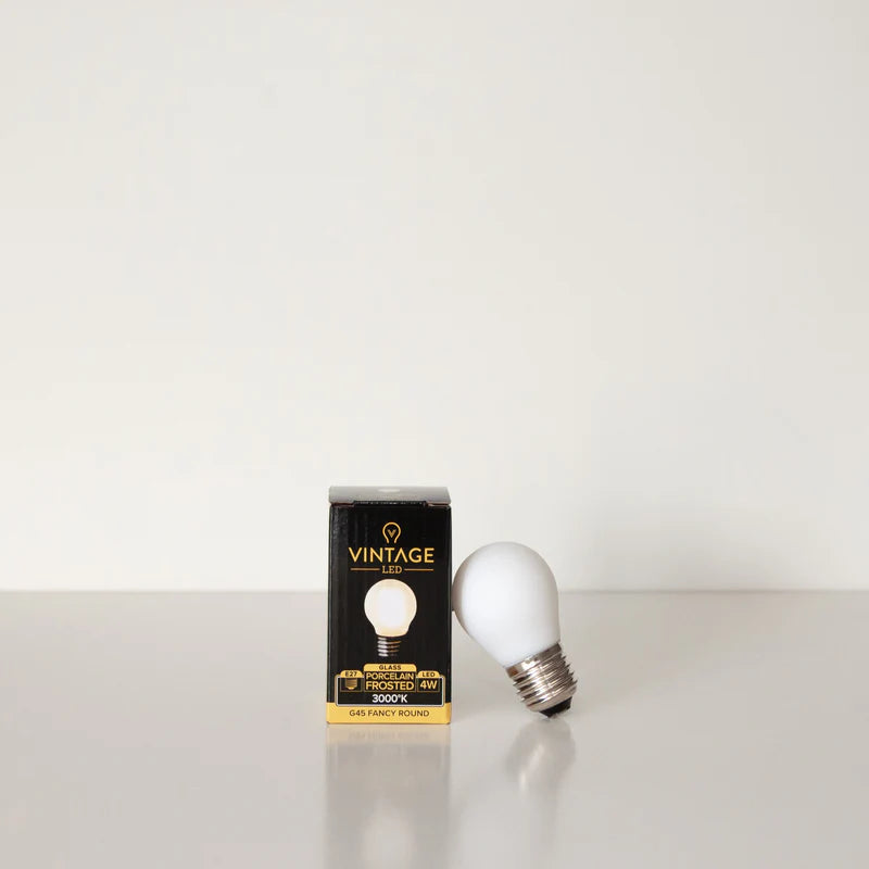 The G45 Fancy Round is a small, sphere-shaped globe that is a versatile accessory for a lamp, festoon kit or pendant where there is limited space. With porcelain frosted glass, this globe is perfect for diffused lighting and an ambient atmosphere.