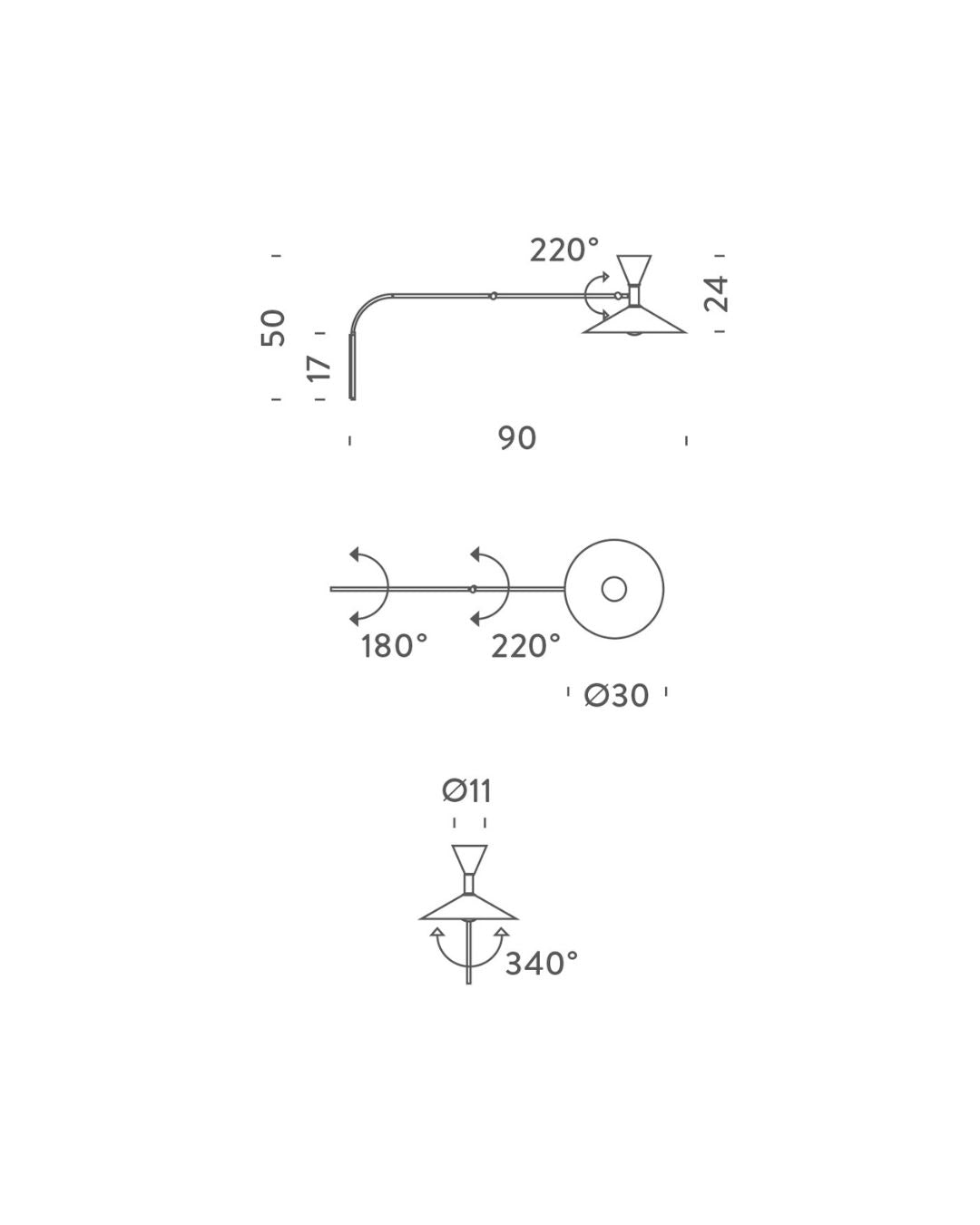 1952 Designed Adjustable Wall Lamp | De Marseille - Grey / Mini / Cable