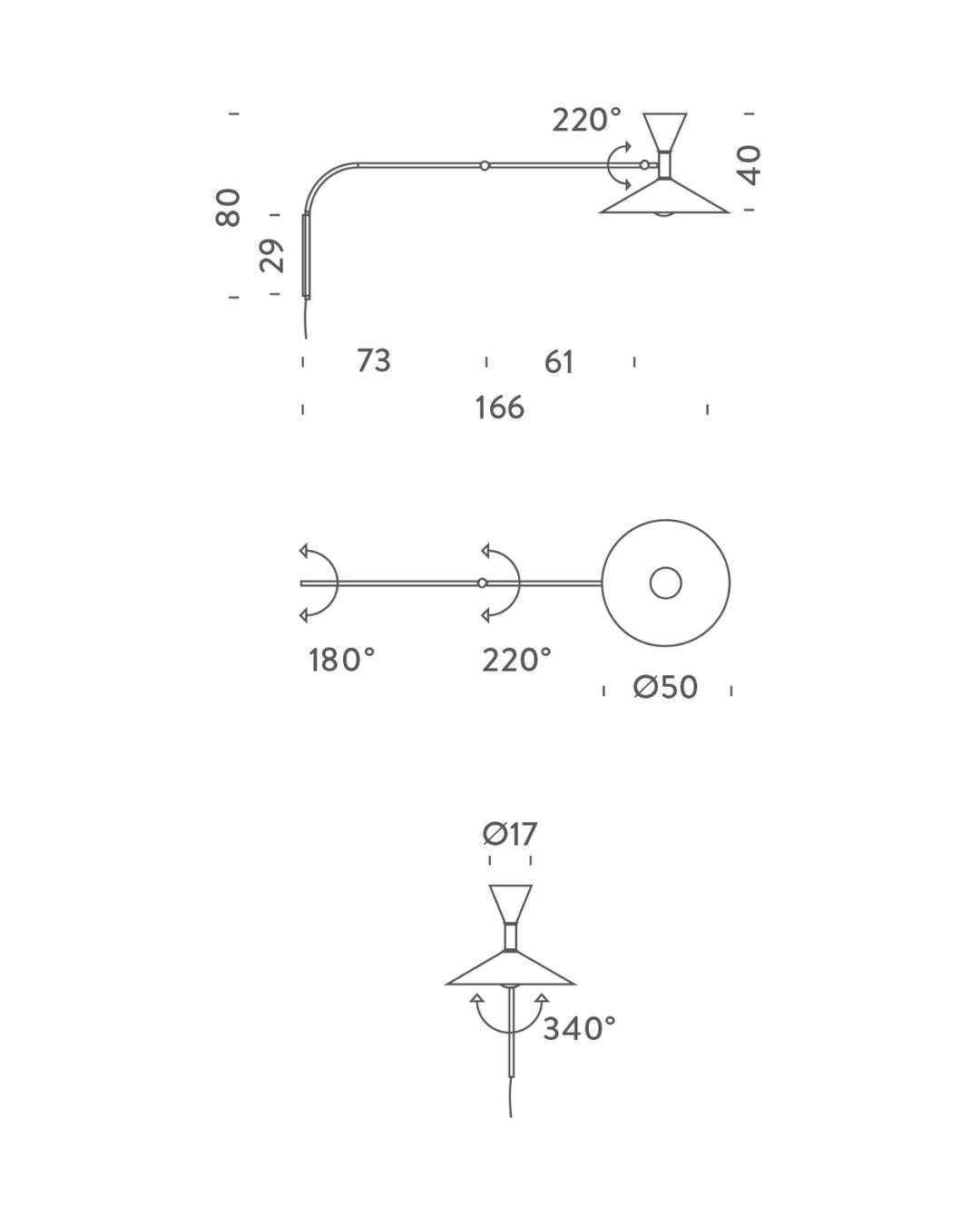 Available in two sizes, with a spun aluminium frame in your choice of two matte finishes, and featuring separately switched light bulbs - allowing both indirect and task lighting. Adjustable at various points of the frame, these wall lights are great for office, lounge or bedside lighting.