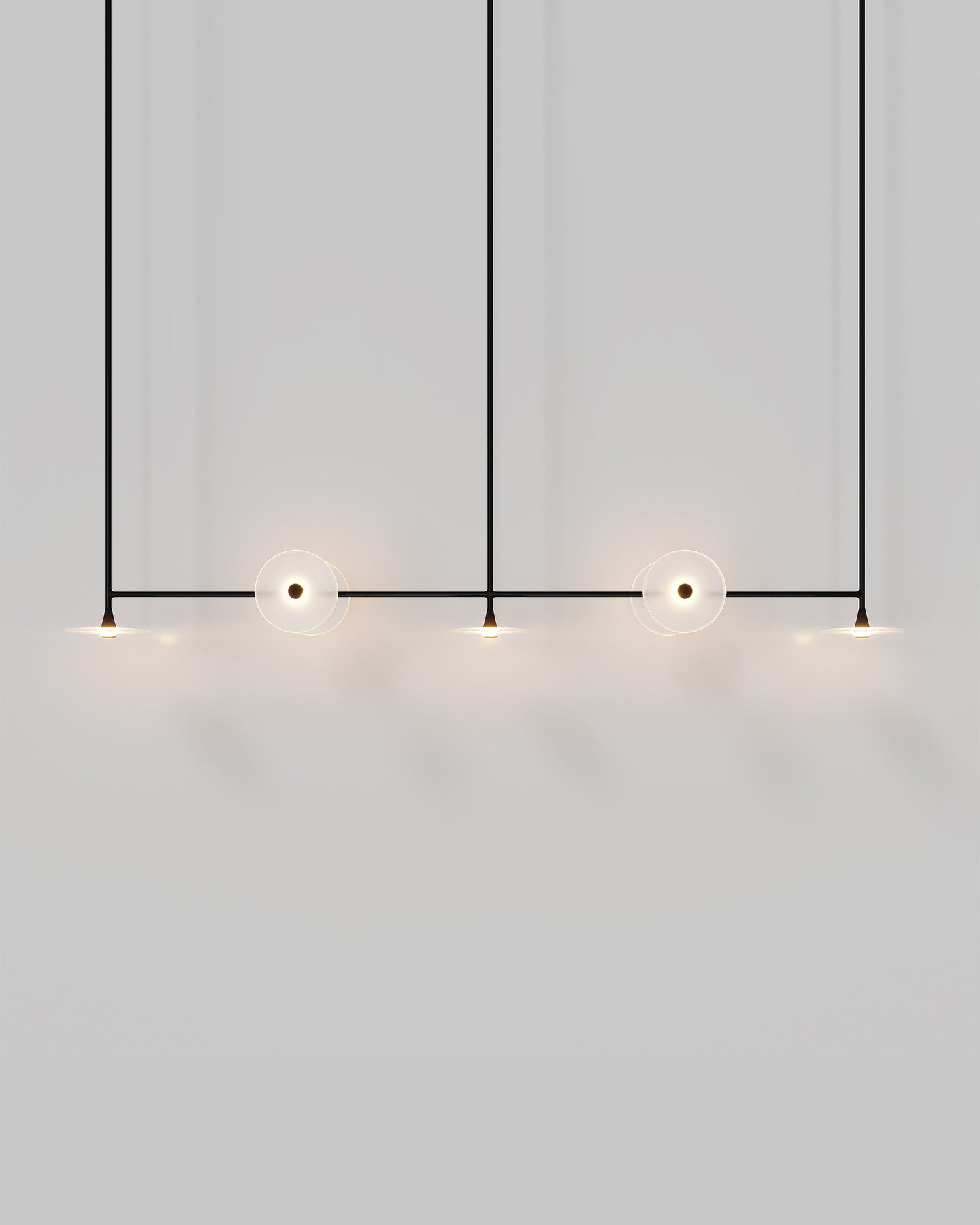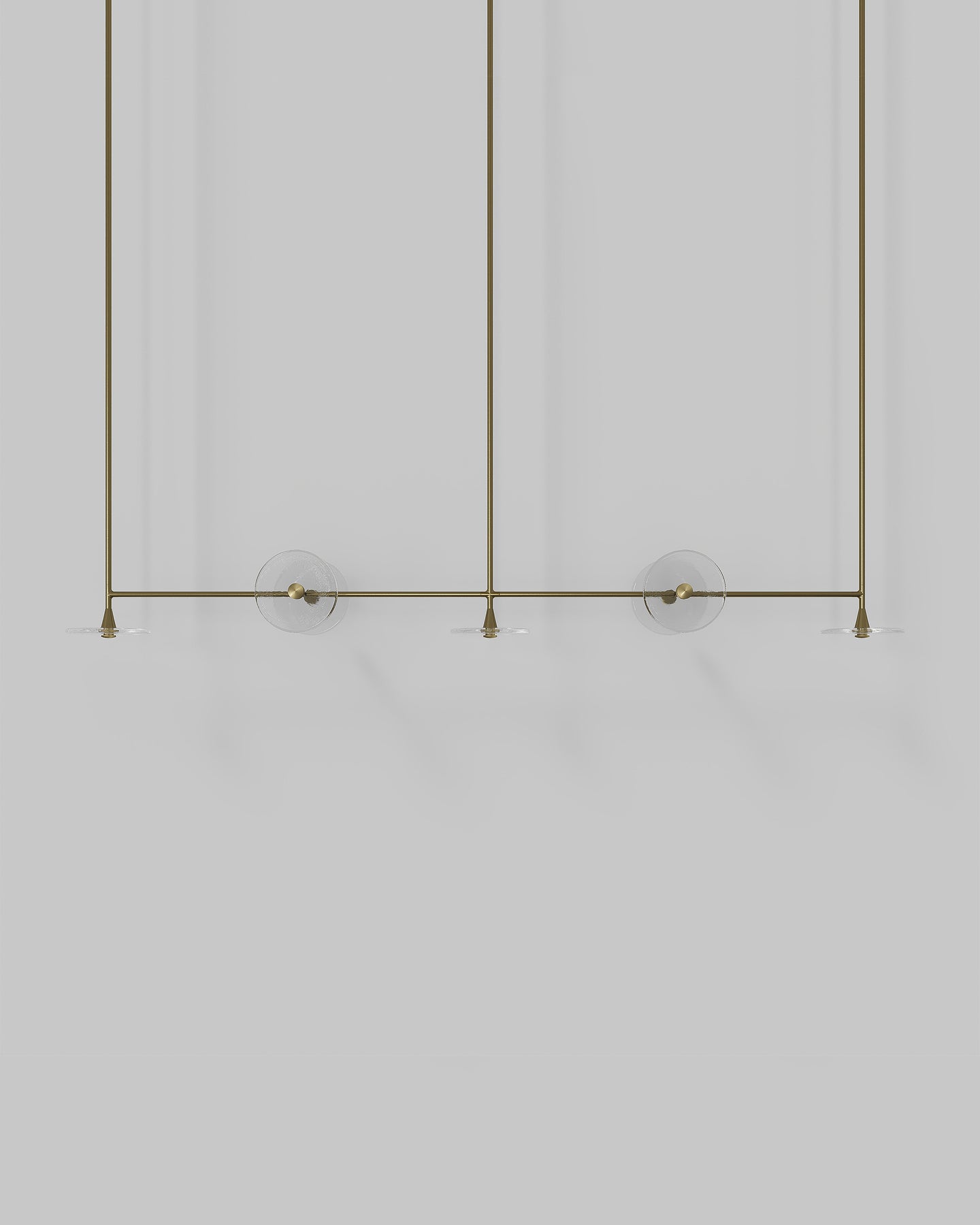 Individually crafted in Currumbin, Australia the Coral 7lt Linear Pendant is a focal centrepiece, intertwining functional lighting with design. Featuring 7 glass discs in a frosted or clear finish, with three facing downwards, and four facing perpendicular to the linear rod, this fitting is ideal for kitchen benches, islands or dining tables. Available in Brass, Matte Black, Matte White, Medium Bronze, or Steel, this is a versatile pendant that will blend into a variety of contemporary interiors.