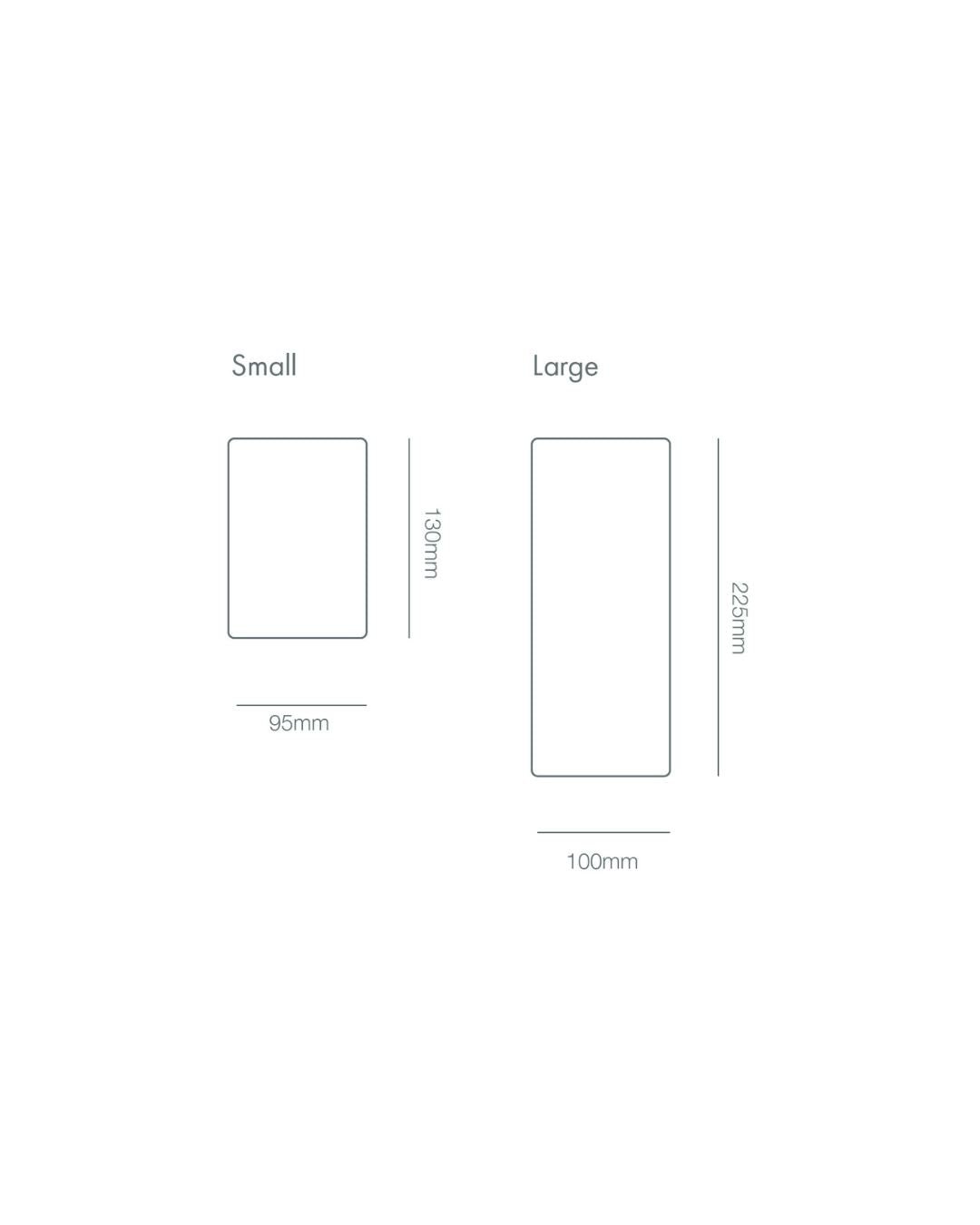 | Height | Small | 130mm Large | 225mm |