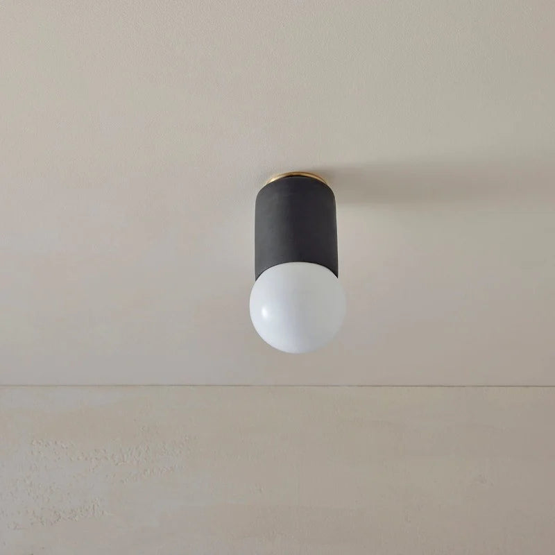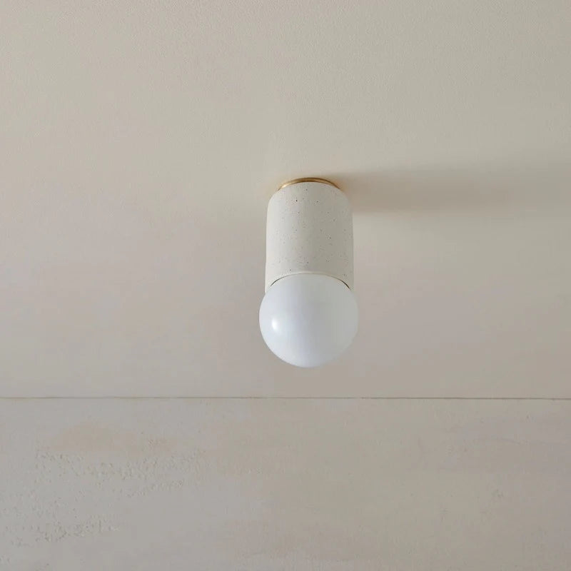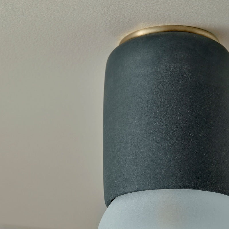 Choose from a simple flush mount ceiling light, or enhance the space by including a brass base plate to complement the interior. Available in a variety of Ceramic, and Glass Finishes.