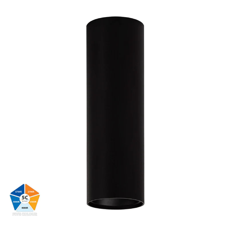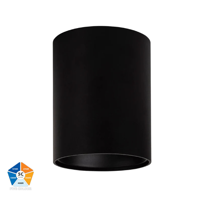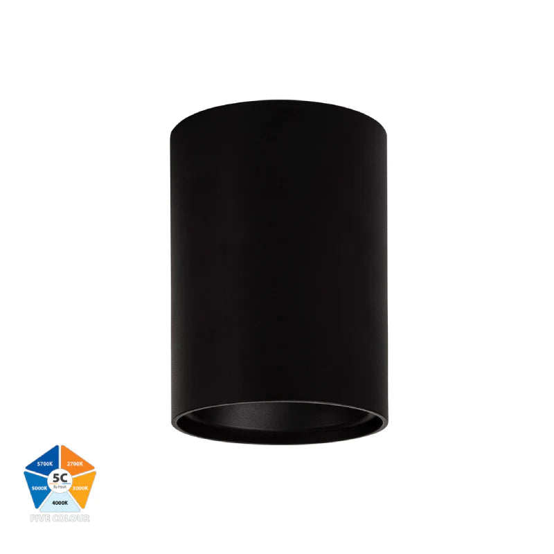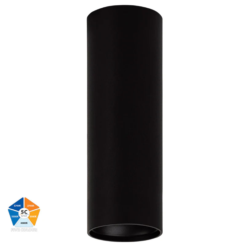 Cylindrical Aluminium Downlight | 5 Colour LED - 7W / Black / Small