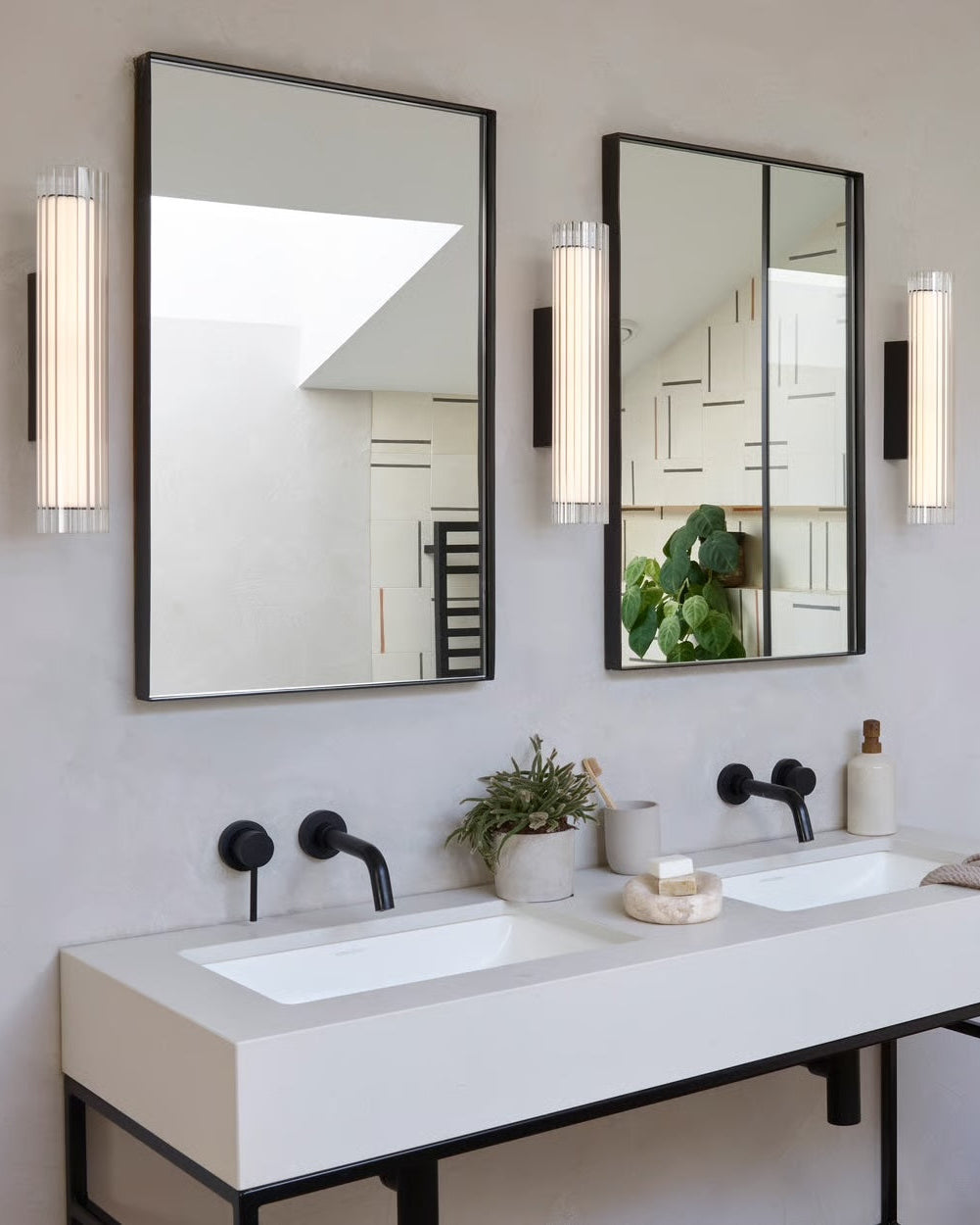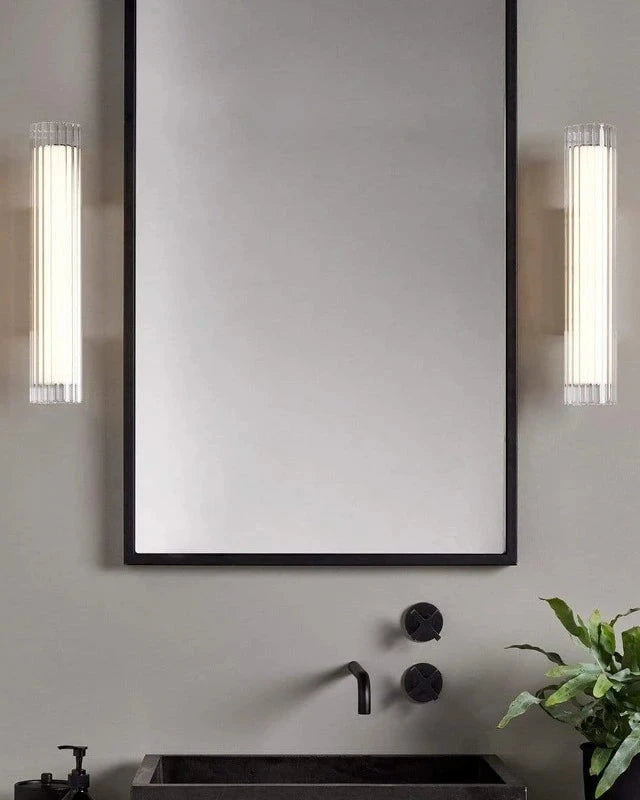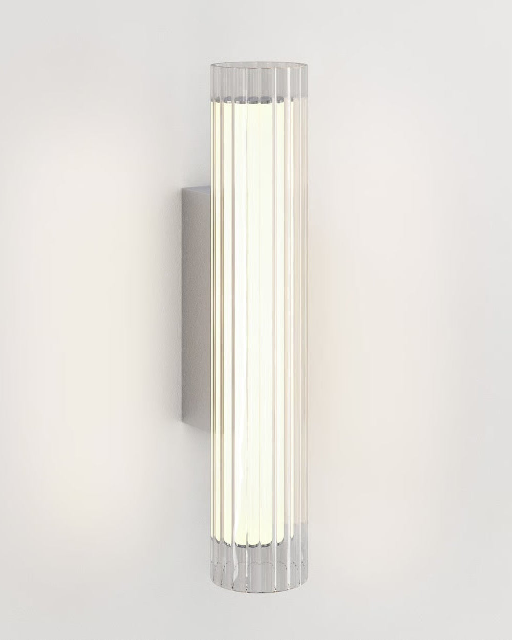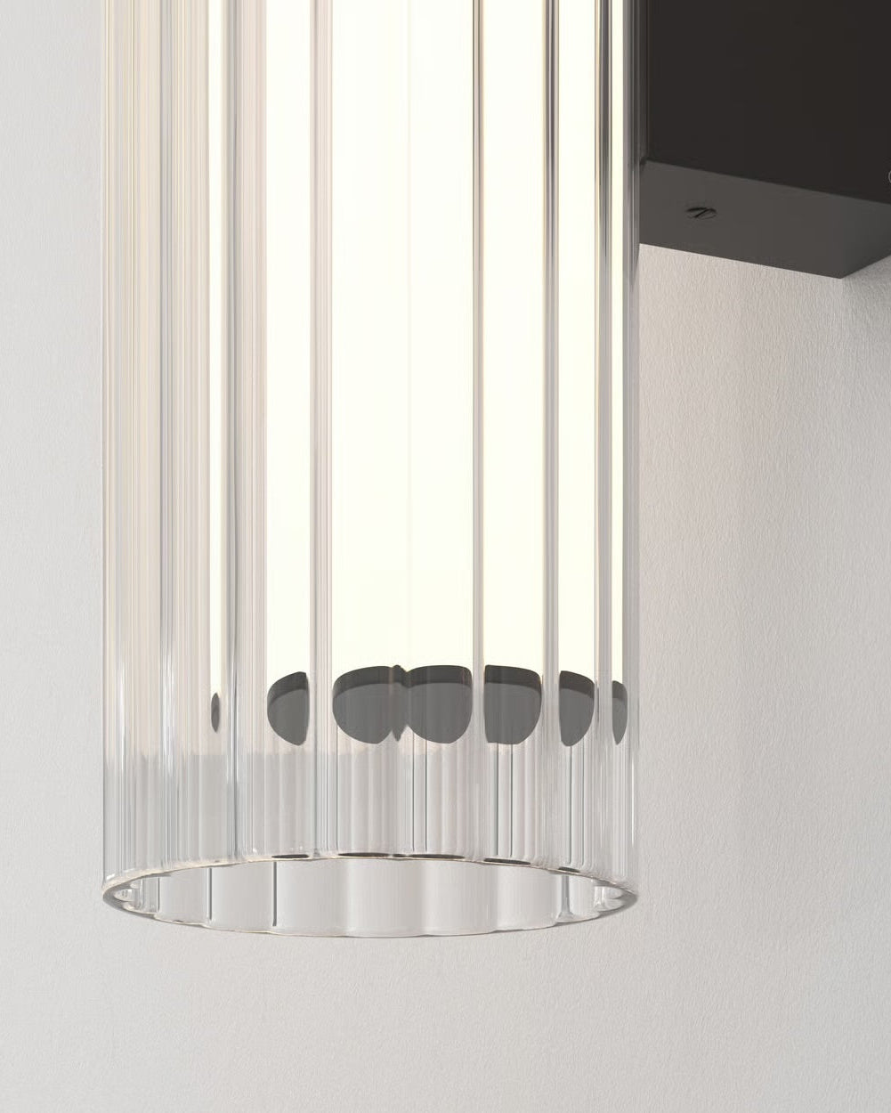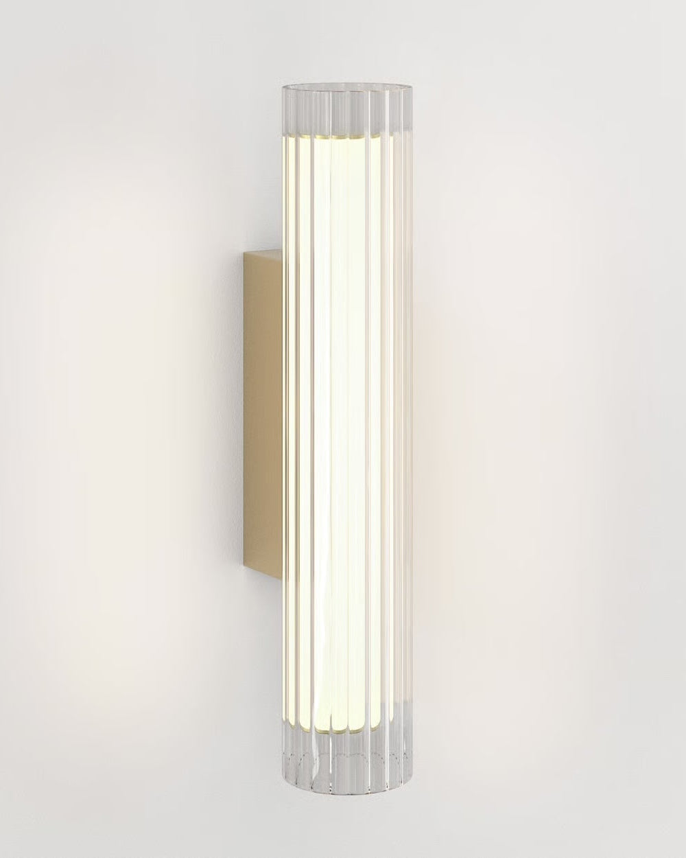This hand crafted, stunning, cylindrical, glass wall light is inspired by the columns of Ancient Greek Architure. Ideal for placement at interior entrances, master bedrooms, bathrooms and hallways it will compliment any modern interior design. Available in Matte Gold, Matte black and Polished Chrome finishes.