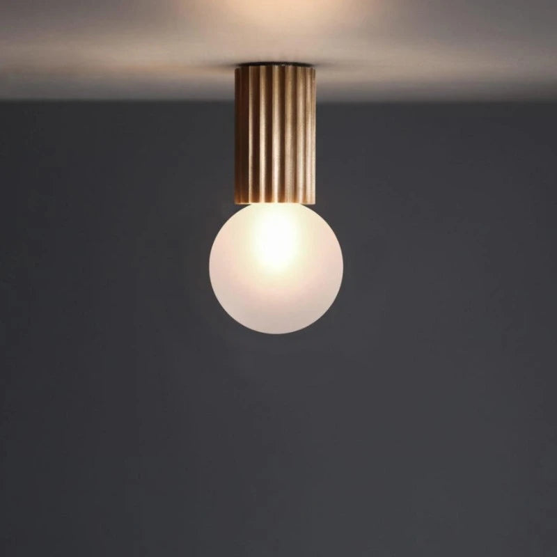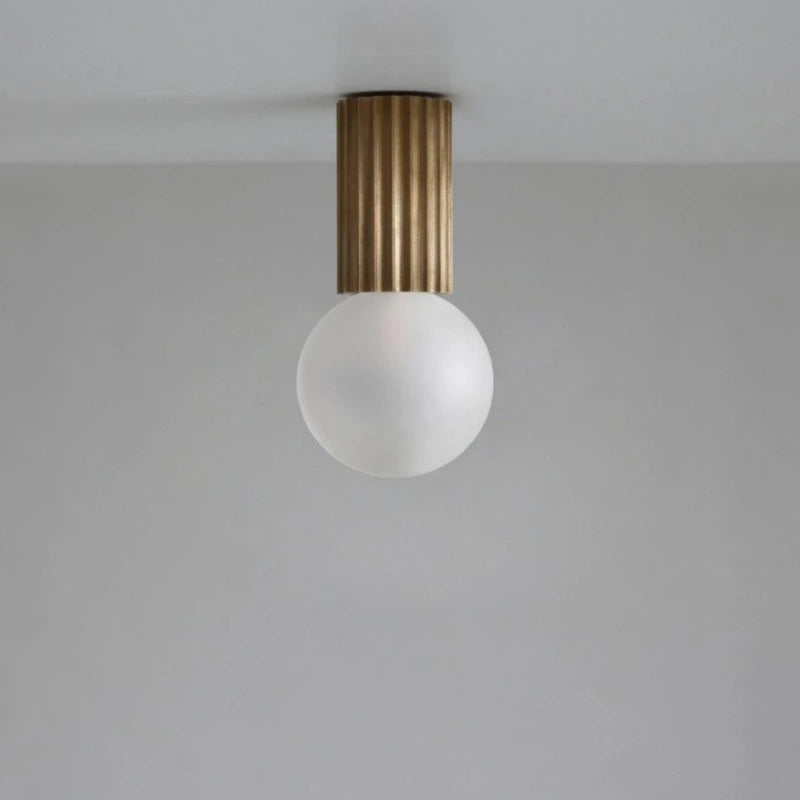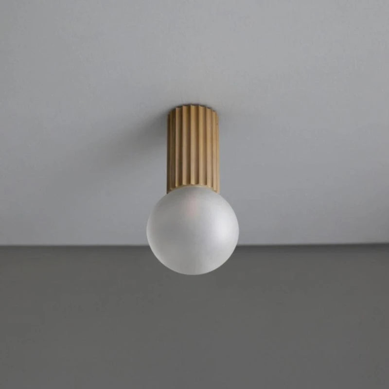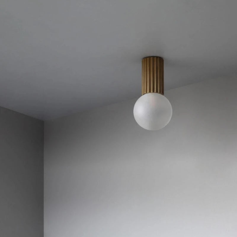 This classical fixture echoes the aesthetic of ancient Greek architectural forms. Its solid brass base complements a frosted LED globe which provides gentle downwards illumination.