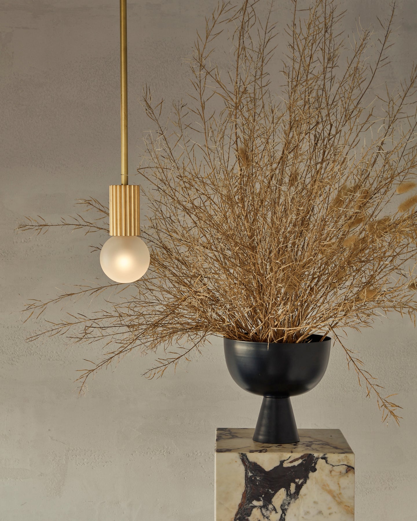 Fluted Brass Suspended Rod Pendant | Attalos - Small