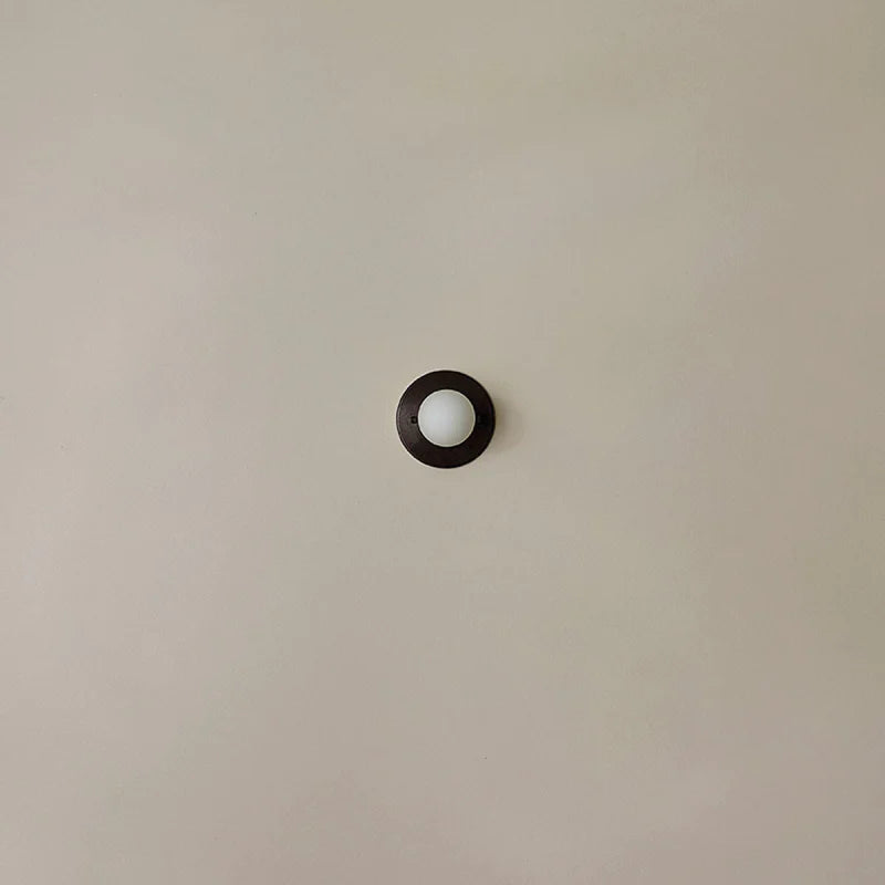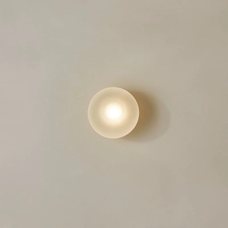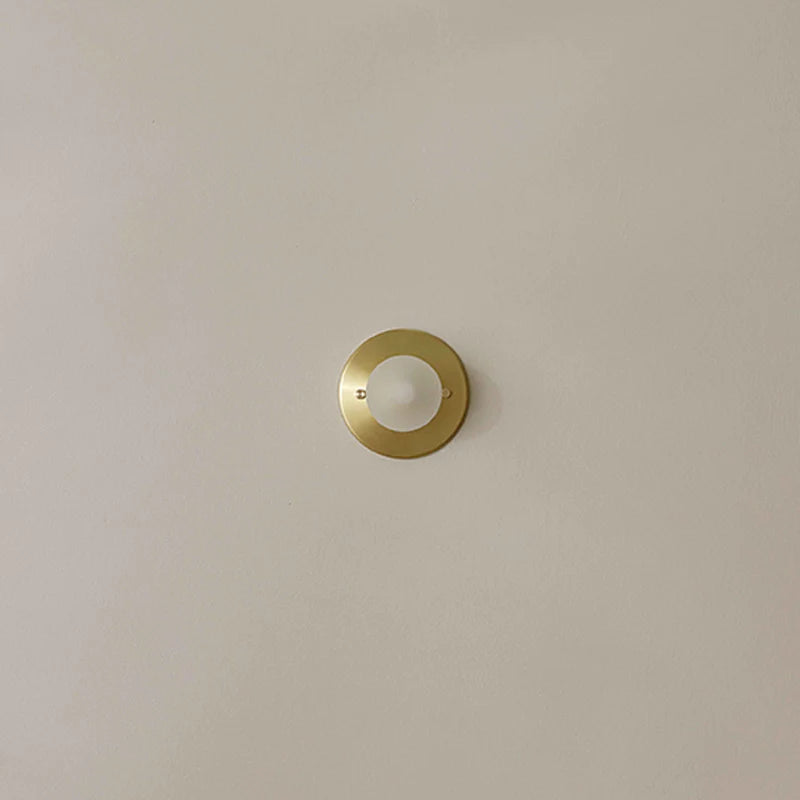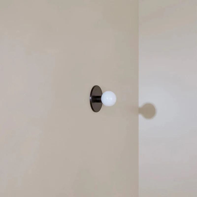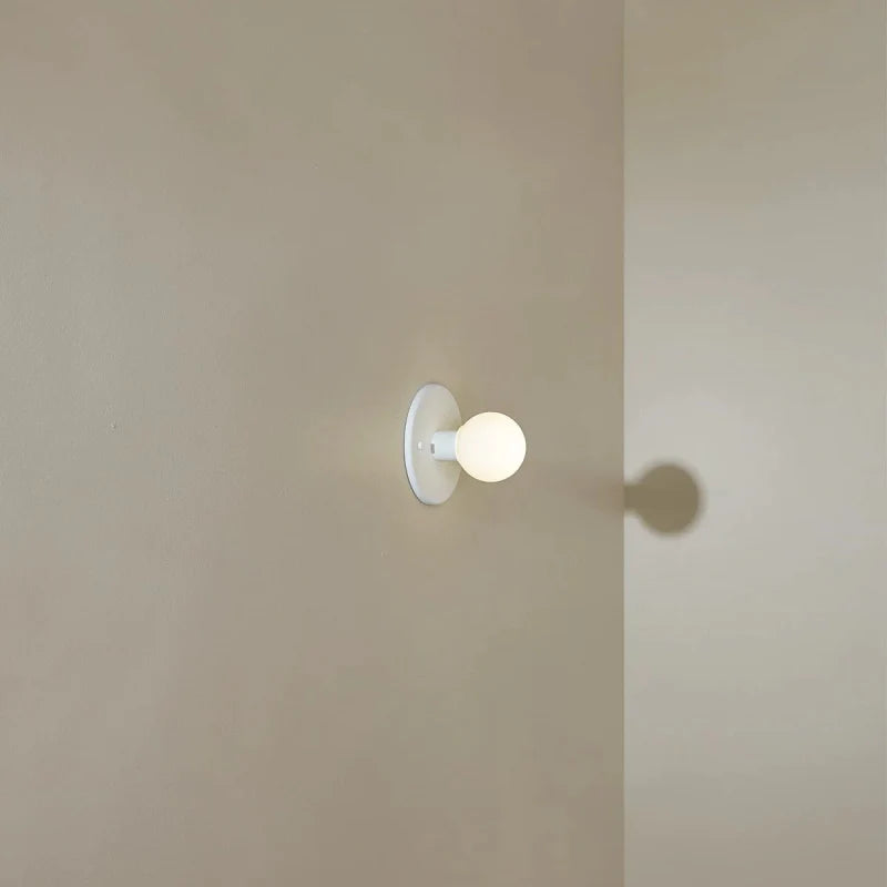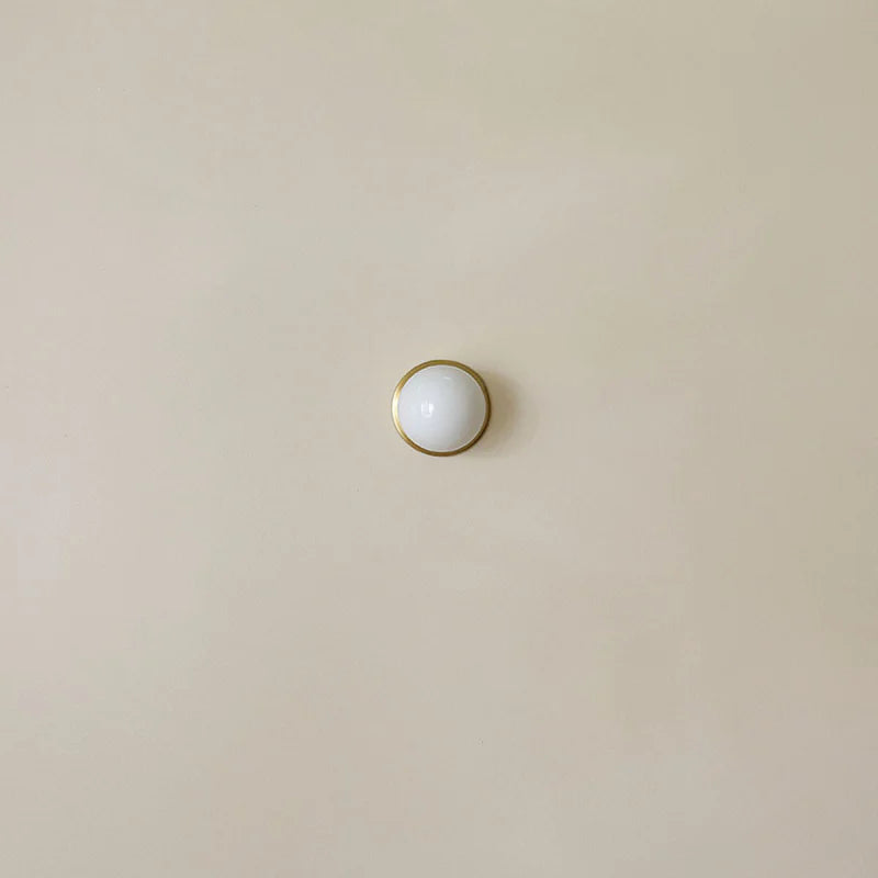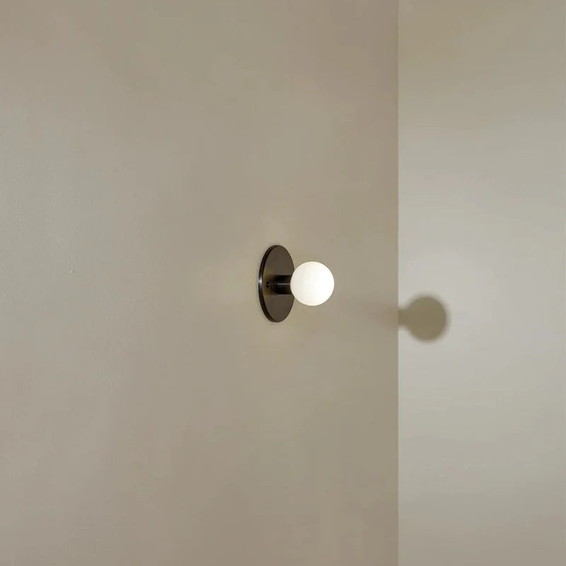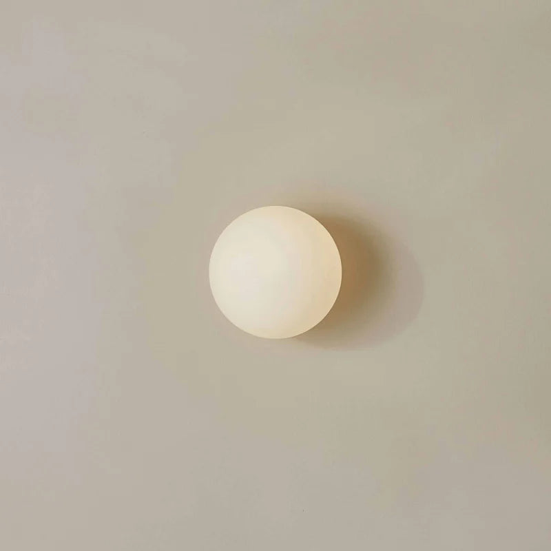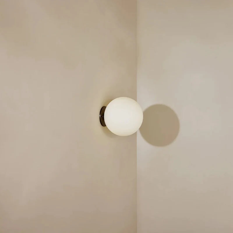 Enhancing any bedroom, kitchen, living room or entrance hall, this spherical wall light is made of glass with three elegant finishes, white frosted, clear frosted or opal, and of a simple metal thin circular mount available in brass, brushed black or satin white. Minimalist and timeless, this small, medium or large fixture will make a statement in any modern or contemporary interior bringing a glare-free cosy light in the surroundings.