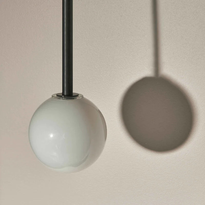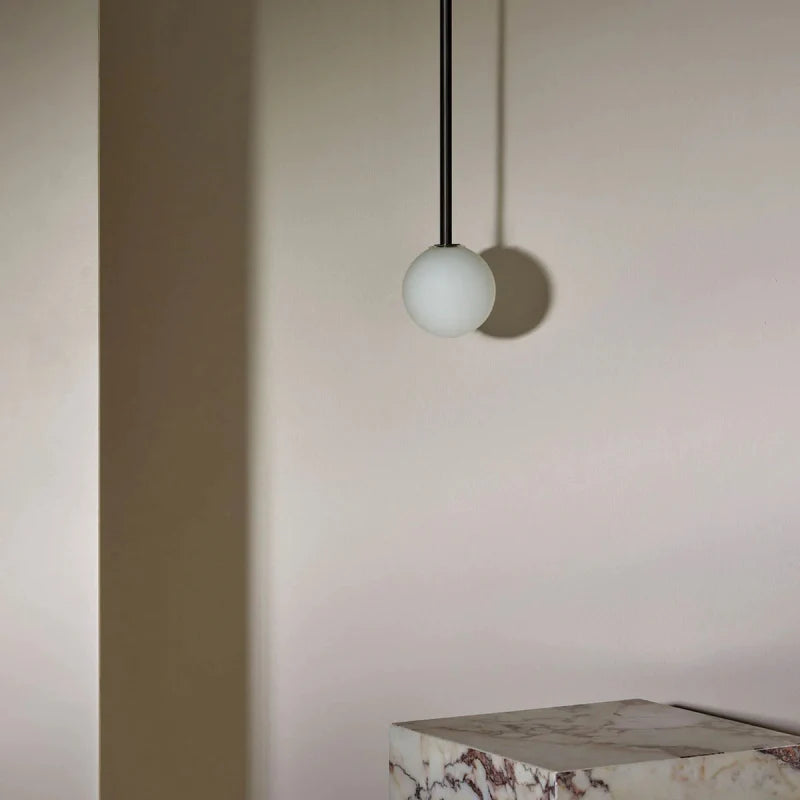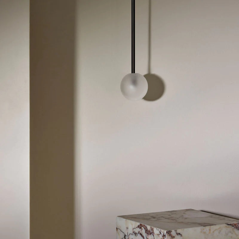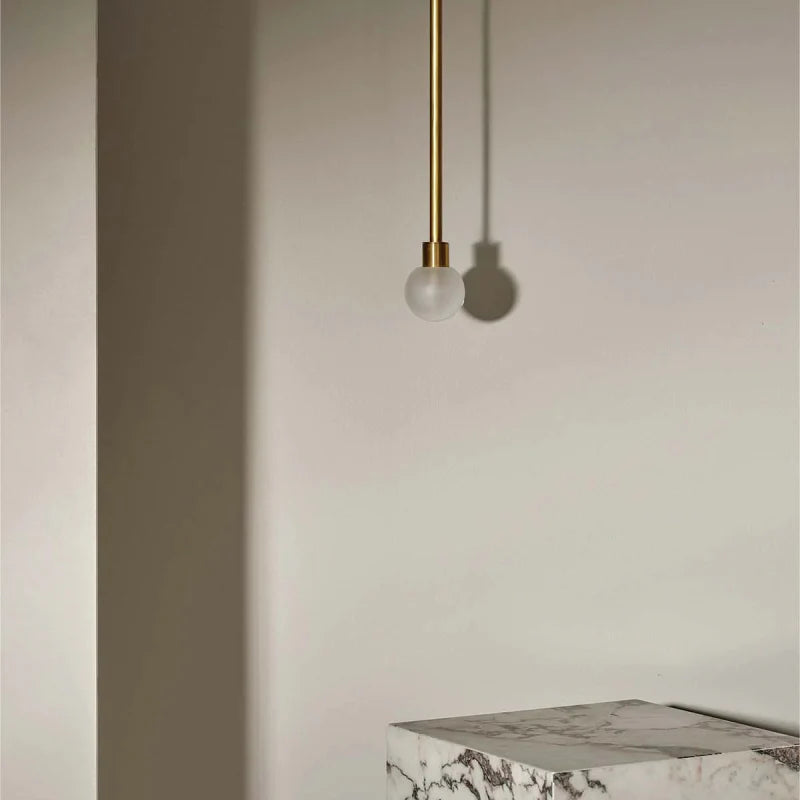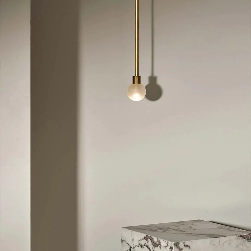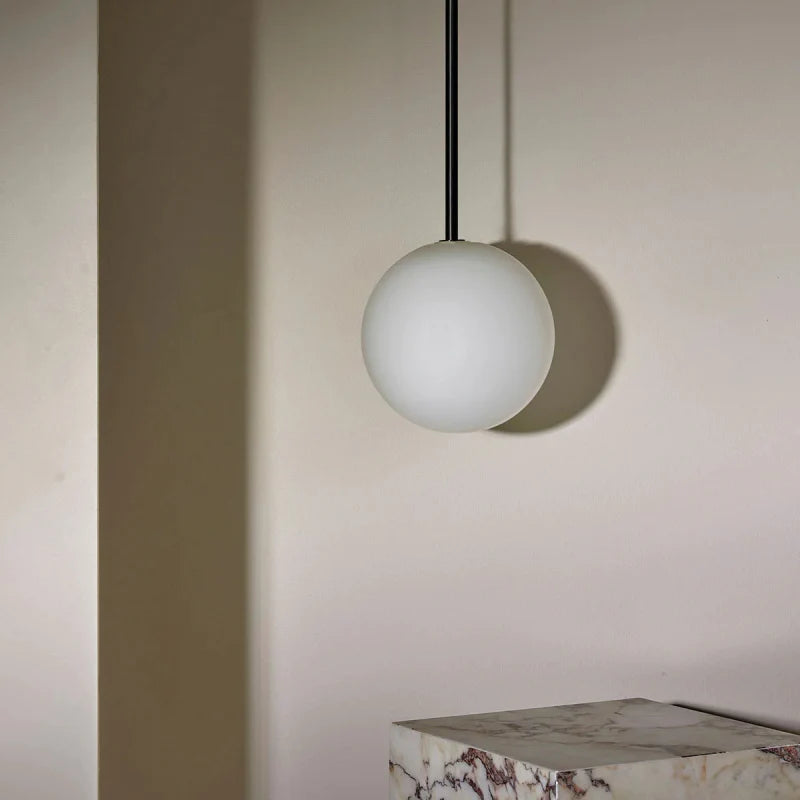 Clear frosted, white frosted or opal, the glass spherical shade which is available as well in three sizes will make a striking statement in classic or modern interiors. IP44 rated, dimmable and composed of brass, brushed black or satin white metal details, this fixture will bring a minimalist yet elegant touch to living rooms, dining rooms, entrance halls or bedrooms.