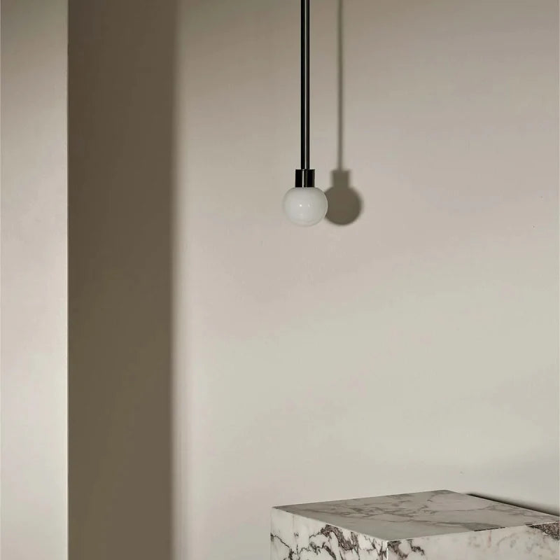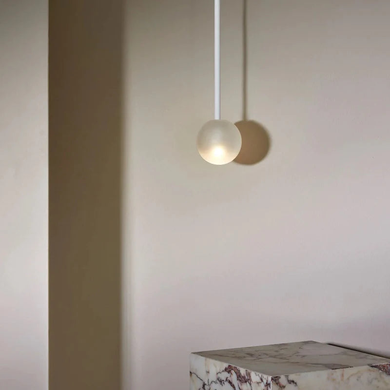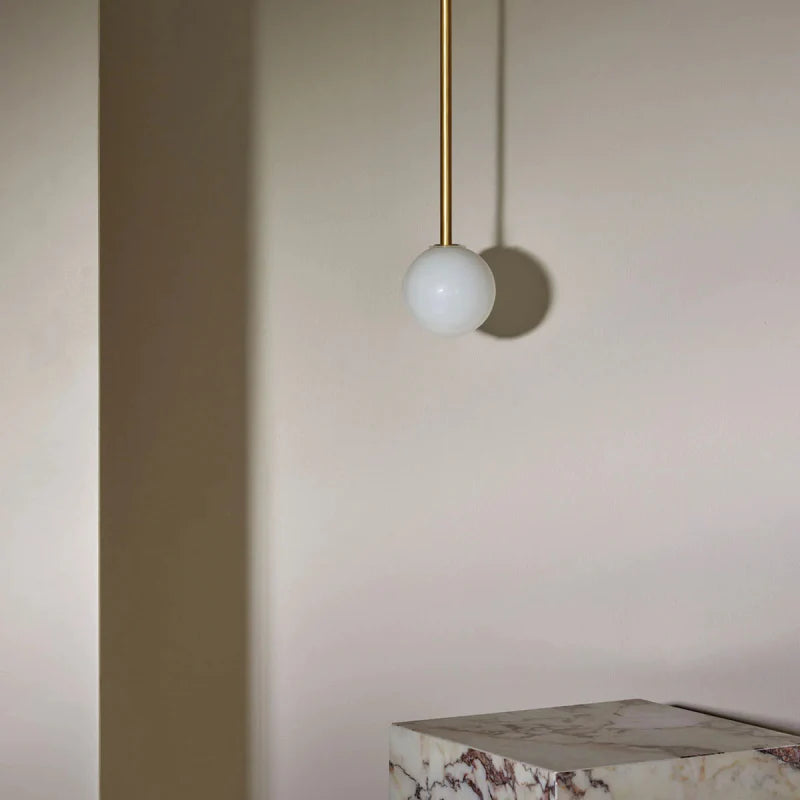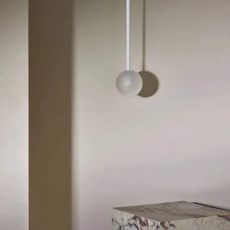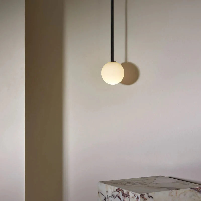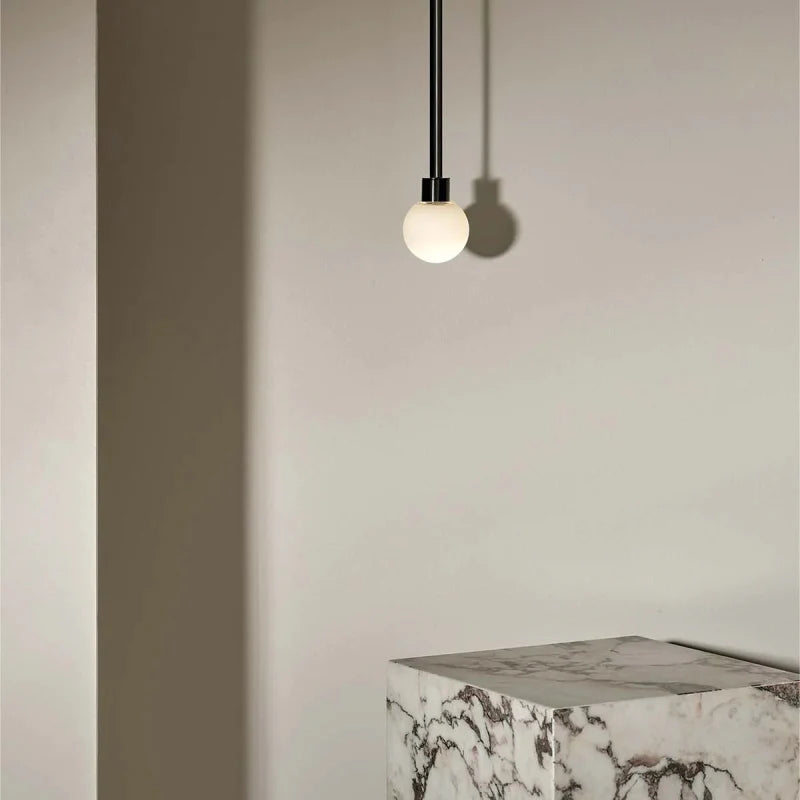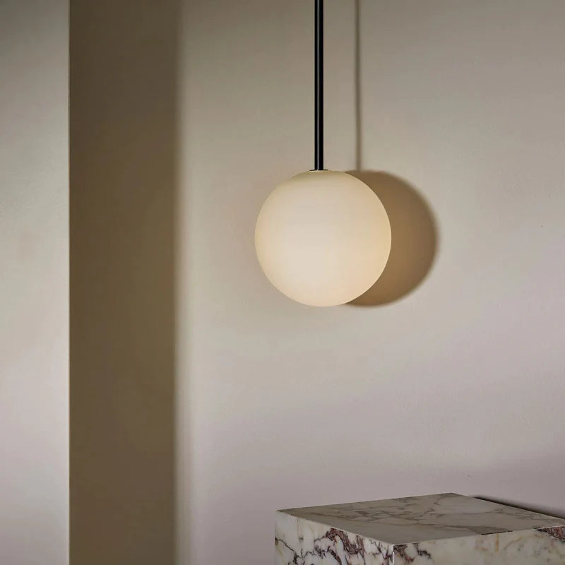 Clear frosted, white frosted or opal, the glass spherical shade which is available as well in three sizes will make a striking statement in classic or modern interiors. IP44 rated, dimmable and composed of brass, brushed black or satin white metal details, this fixture will bring a minimalist yet elegant touch to living rooms, dining rooms, entrance halls or bedrooms.