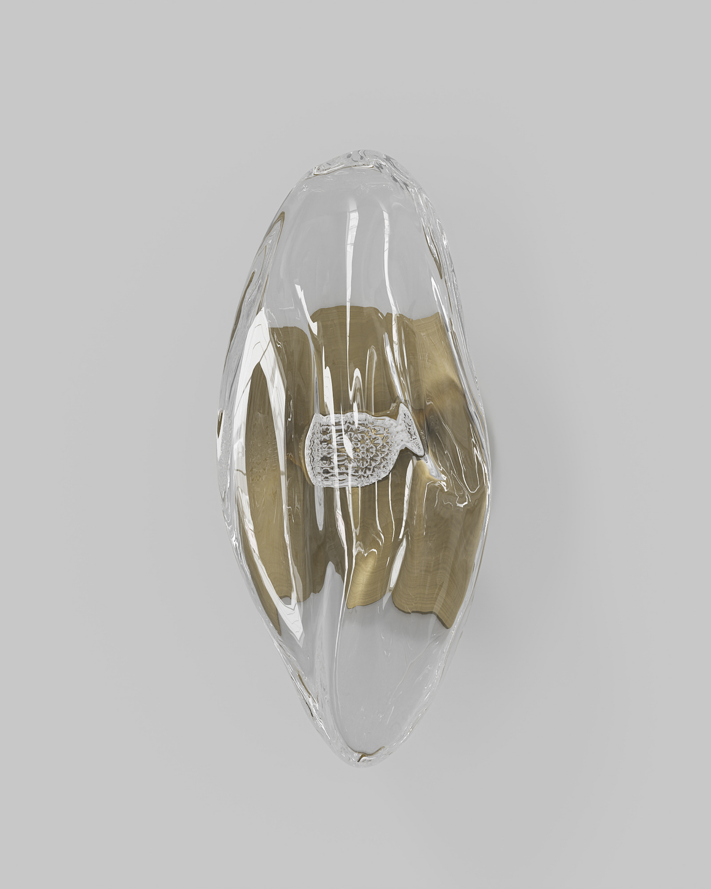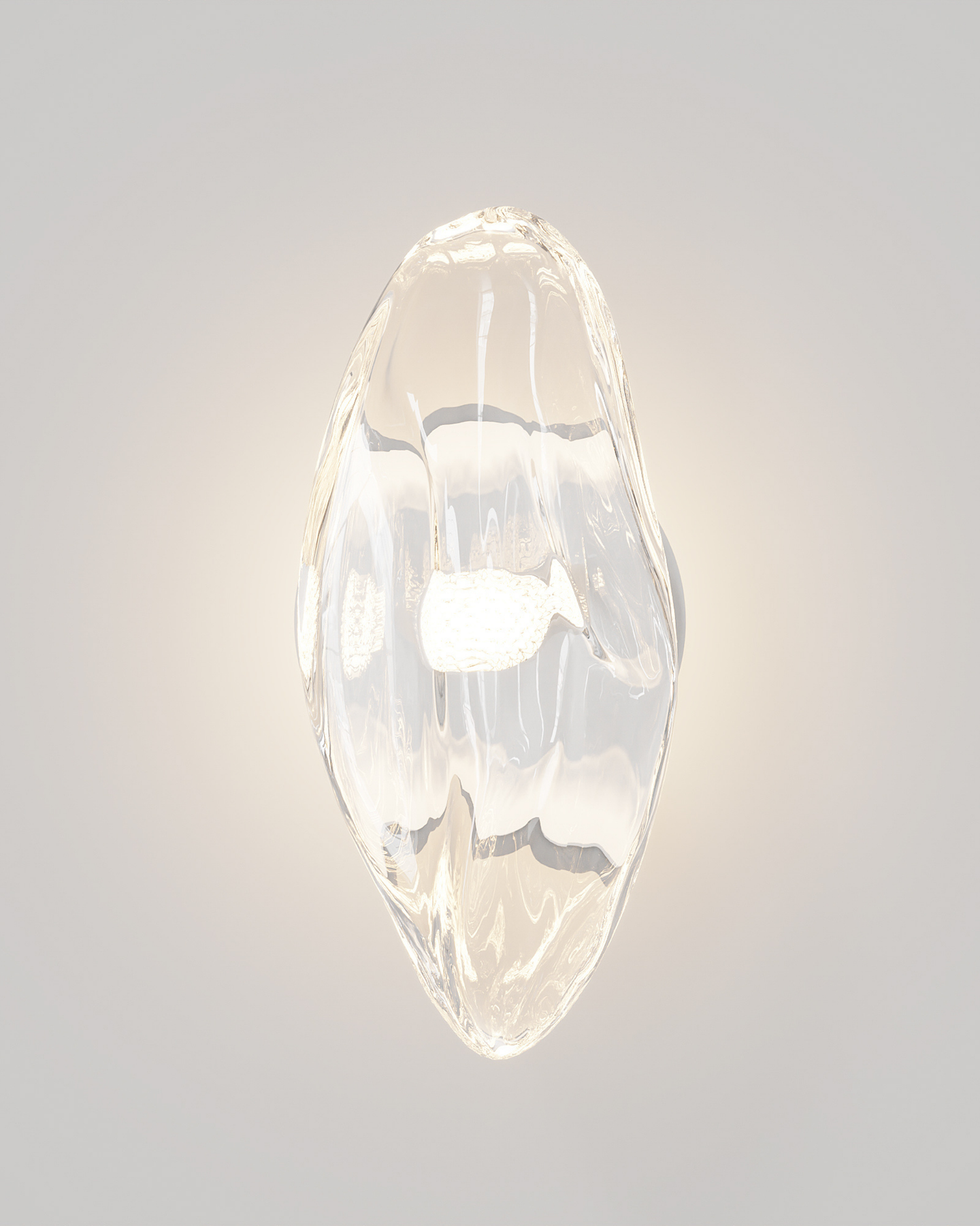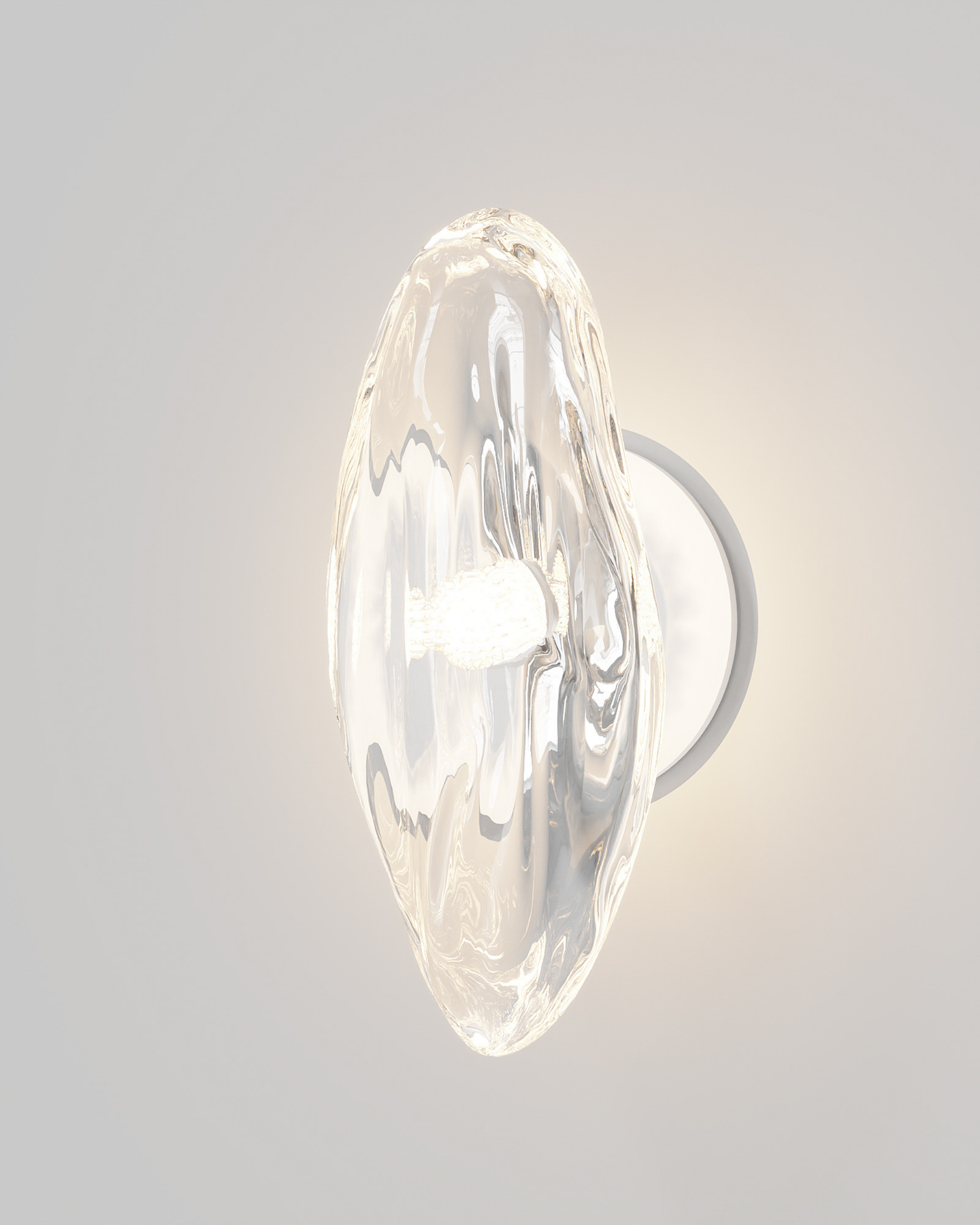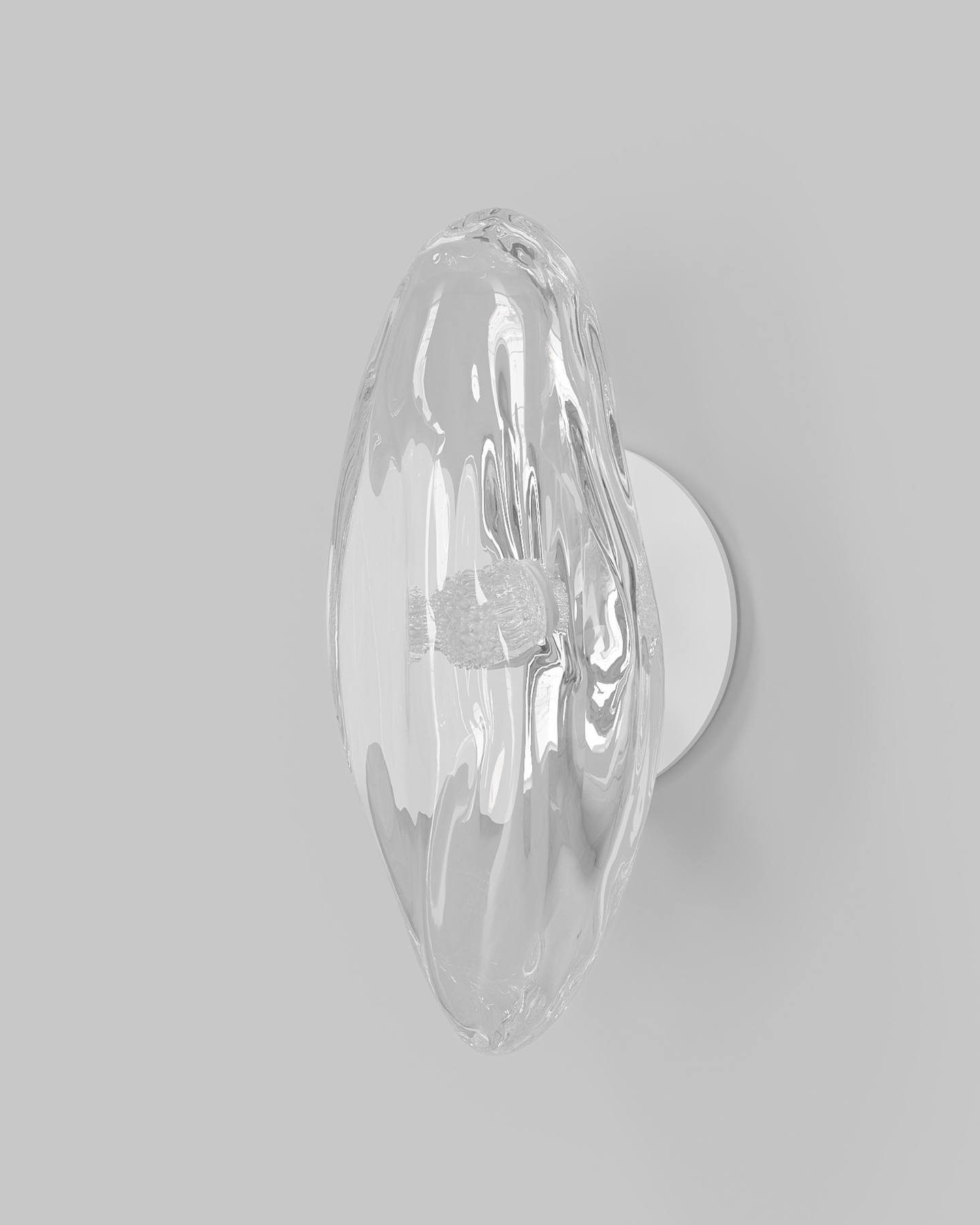 Created with molten glass and hand-blown at 1,000 degrees Celsius, this wall light showcases an organic form. Designed by Oliver Höglund and Ryan Roberts, each piece is individually crafted in Currumbin, Australia, using high-quality Swedish clear glass. No two pieces of this modern, free-form design are the same, making it a distinctive addition to any space.