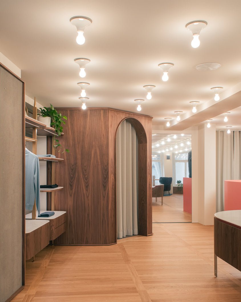 Available in anthracite, white, orange, or transparent finishes, Teti brings a subtle statement to interiors. The clean, geometric lines showcase the bulb while providing a balanced, ambient glow. Crafted in Italy by Artemide, this timeless design continues to offer refined lighting that suits modern and contemporary interiors.
