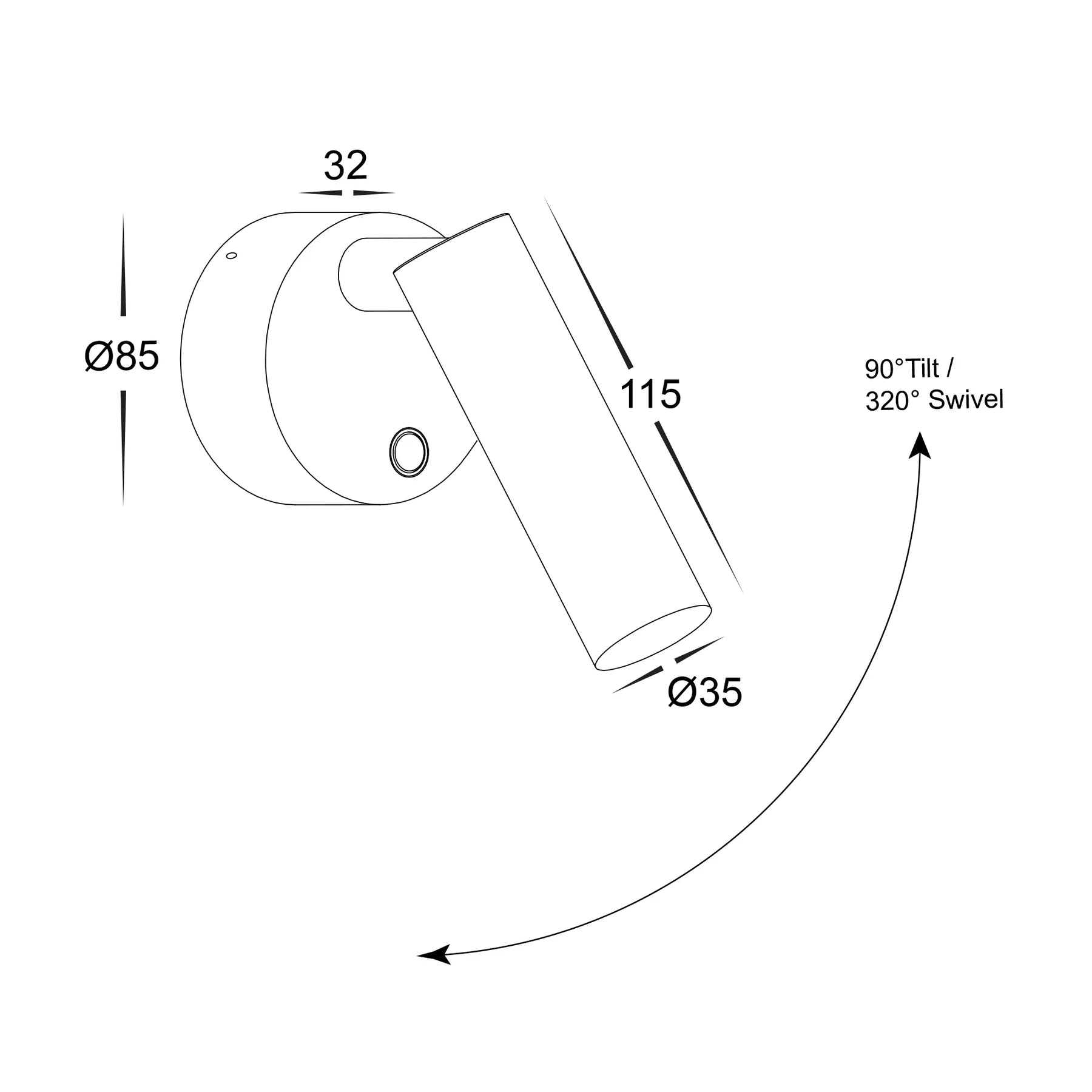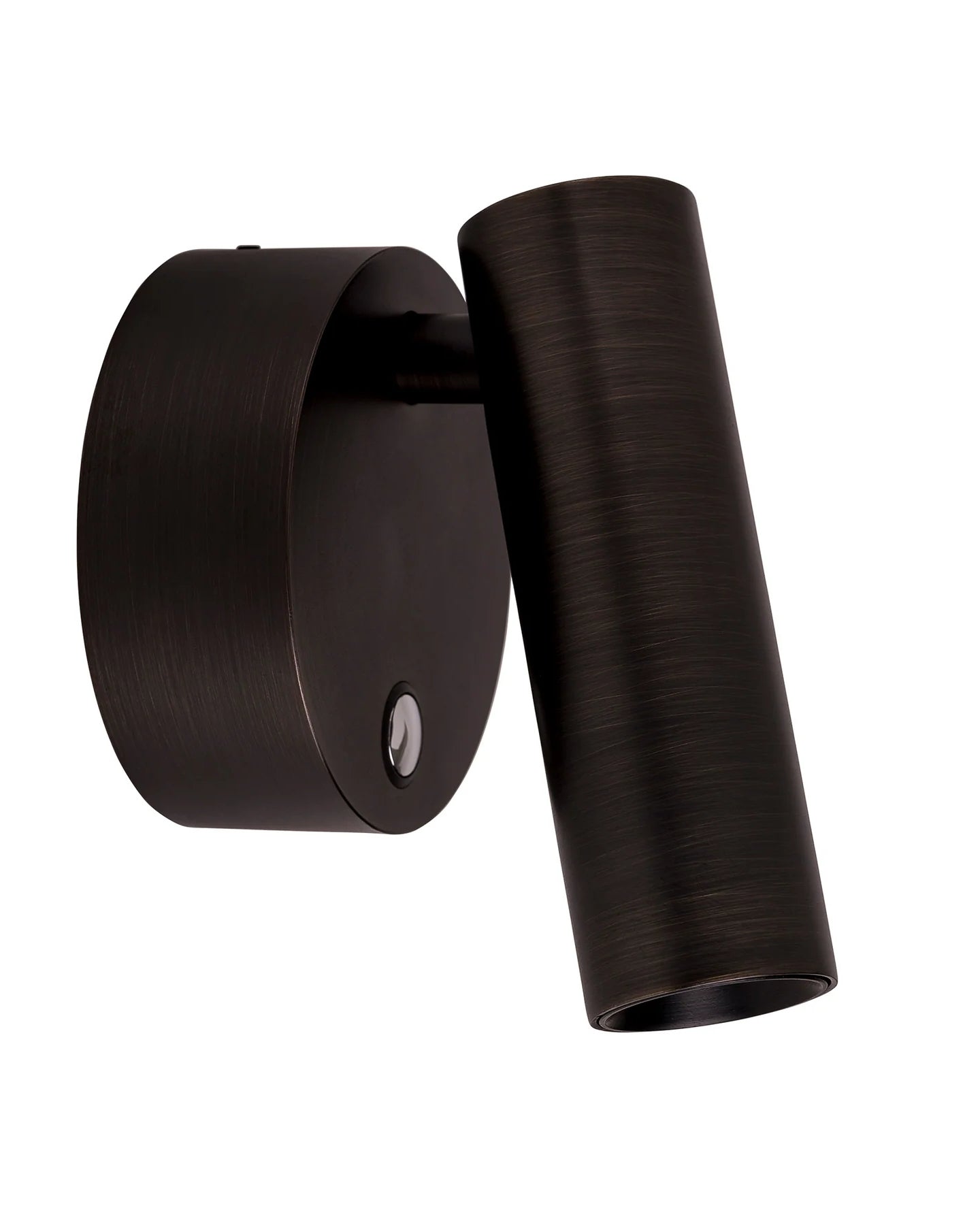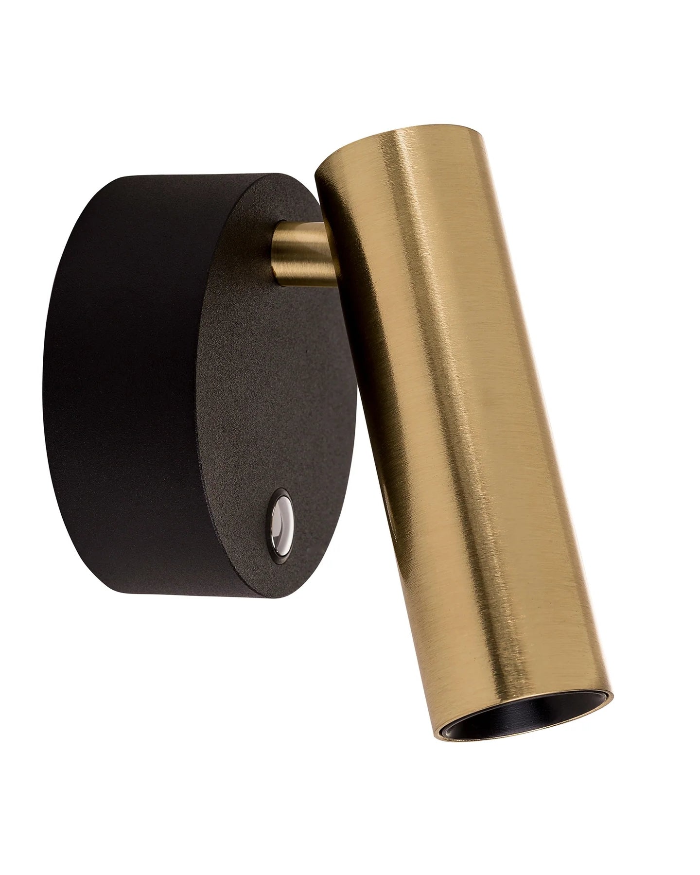 This cylindrical down-wall light will be perfect for providing accent lighting in living rooms or functioning as a reading lamp next to the bed. Modern and simple, this fixture is adjustable to direct light where it is needed within modern and contemporary interiors. Dimmable with a touch switch located on the wall mount. This allows the choice of choosing between warm white, neutral white and a daylight light. It features a built-in LED and it is available in matte black or white powder-coated aluminium, or in antique brass or black and brass.