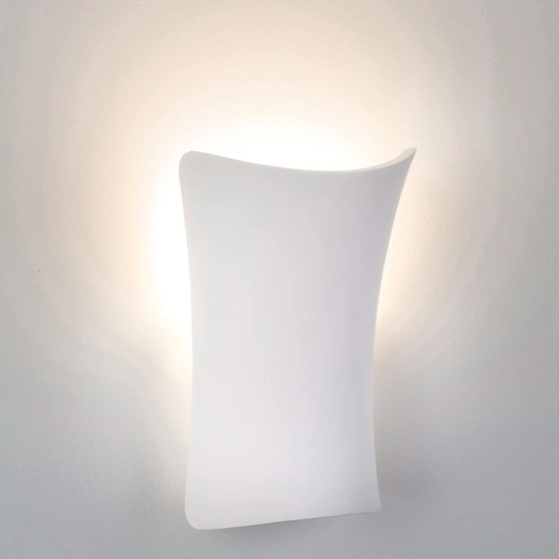 The Curved Plaster Wall Light utilises uplighting to wash the wall with a warmth of light, creating a diffusing aura effect. Illuminate your space with this elegant feature light that will compliment modern and minimal spaces. Expertly designed for adaptability, this fixture can be painted with water-based paint to match a room's design or contrasted with a different colour to enhance its appearance.