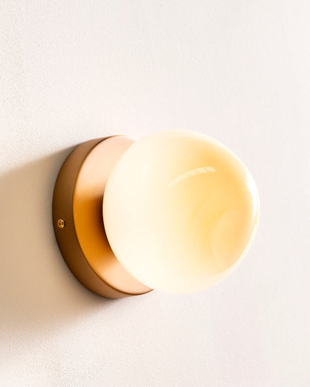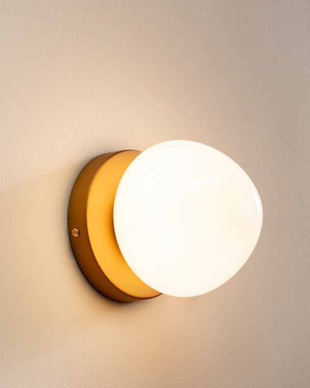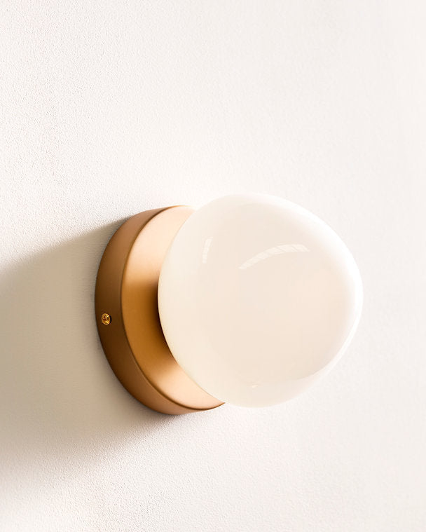 The Hand-Blown Orb Wall Light features an orb-shaped glass shade, with a slightly pointed end that adds a touch of unique flair. These fittings are hand-crafted in a glass studio in Melbourne, Australia, making each light slightly different. Choose from a translucent Opal or Apricot glass finish for a more soft and diffused light, or a transparent Graphite or Sargasso for a more direct lighting alternative.