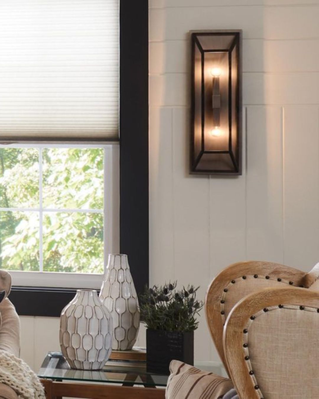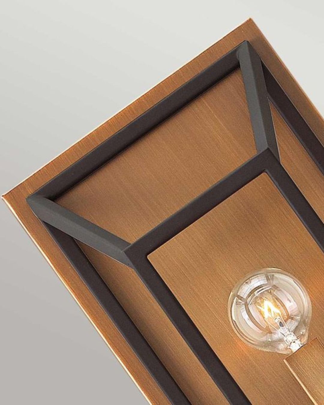 This bold organic industrial wall light exudes a simple yet refined state. The bronze tonality emanates a warm ambience while the absence of glass within the framing creates an airy disposition. Use the industrious warmth from this light to create ambience in your study, hallway or beside your bed.