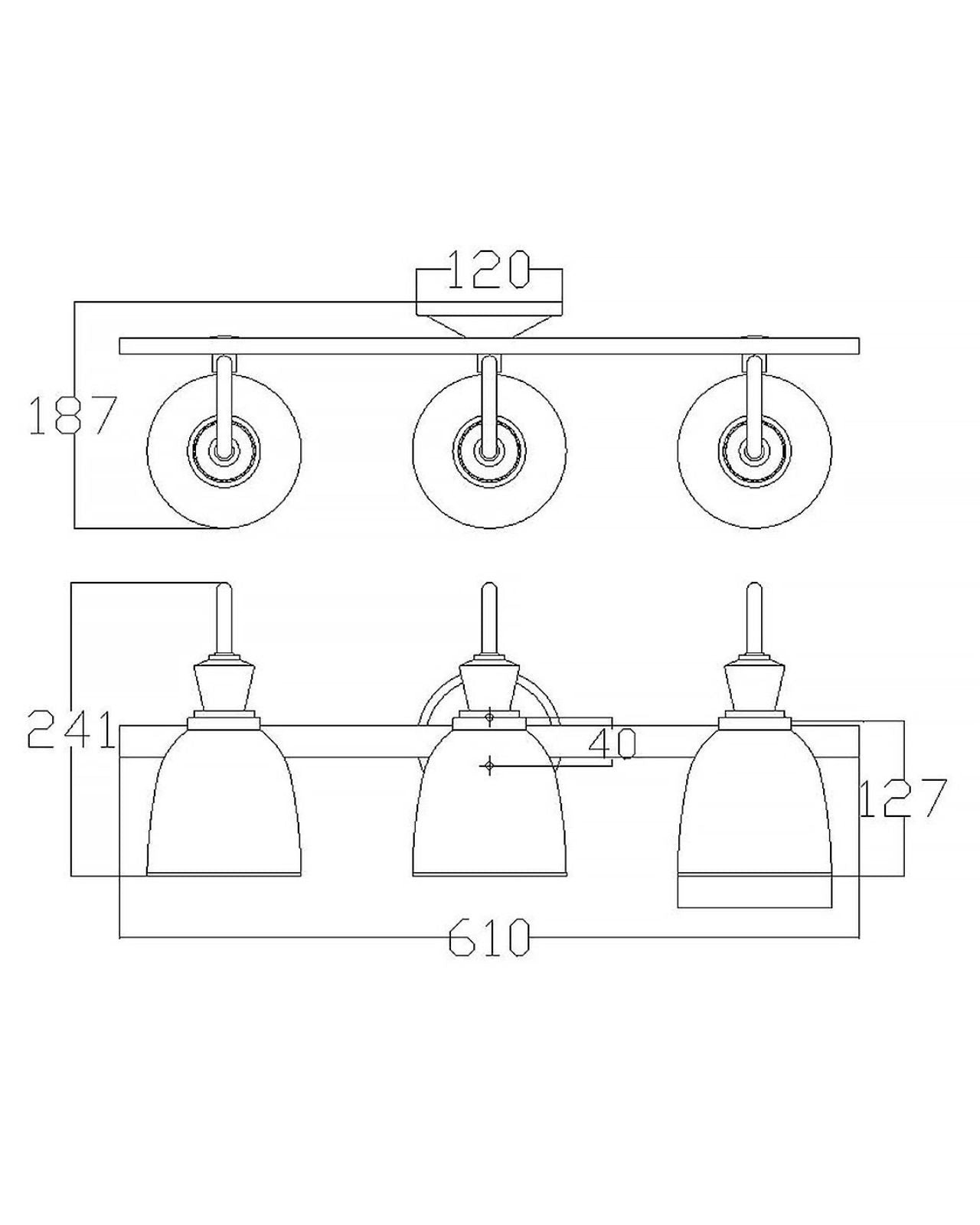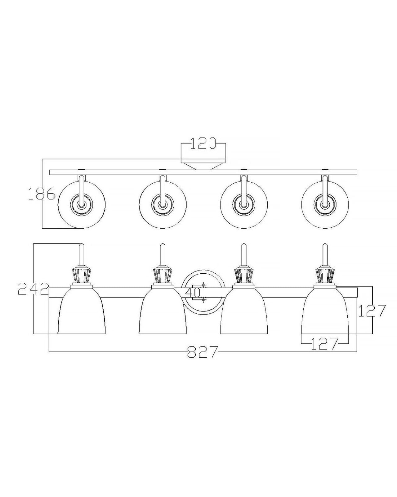| Width | 1 Light | 127mm 2 Light | 406mm 3 Light | 610mm 4 Light | 827mm |