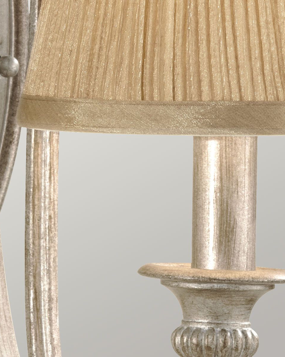 This classic wall light is an elegant design inspired by European architecture. This fitting has a traditional shaped arm with a hand brushed finish in soft silver; which is complemented with a mushroom pleated shade. This wall light would look amazing in many spaces including the bedroom, foyer, hallway, office and also it would compliment interior features within your larger rooms.