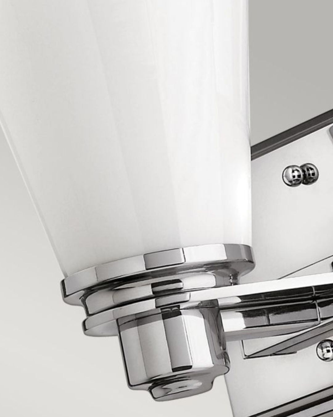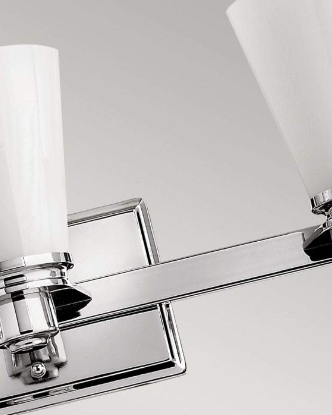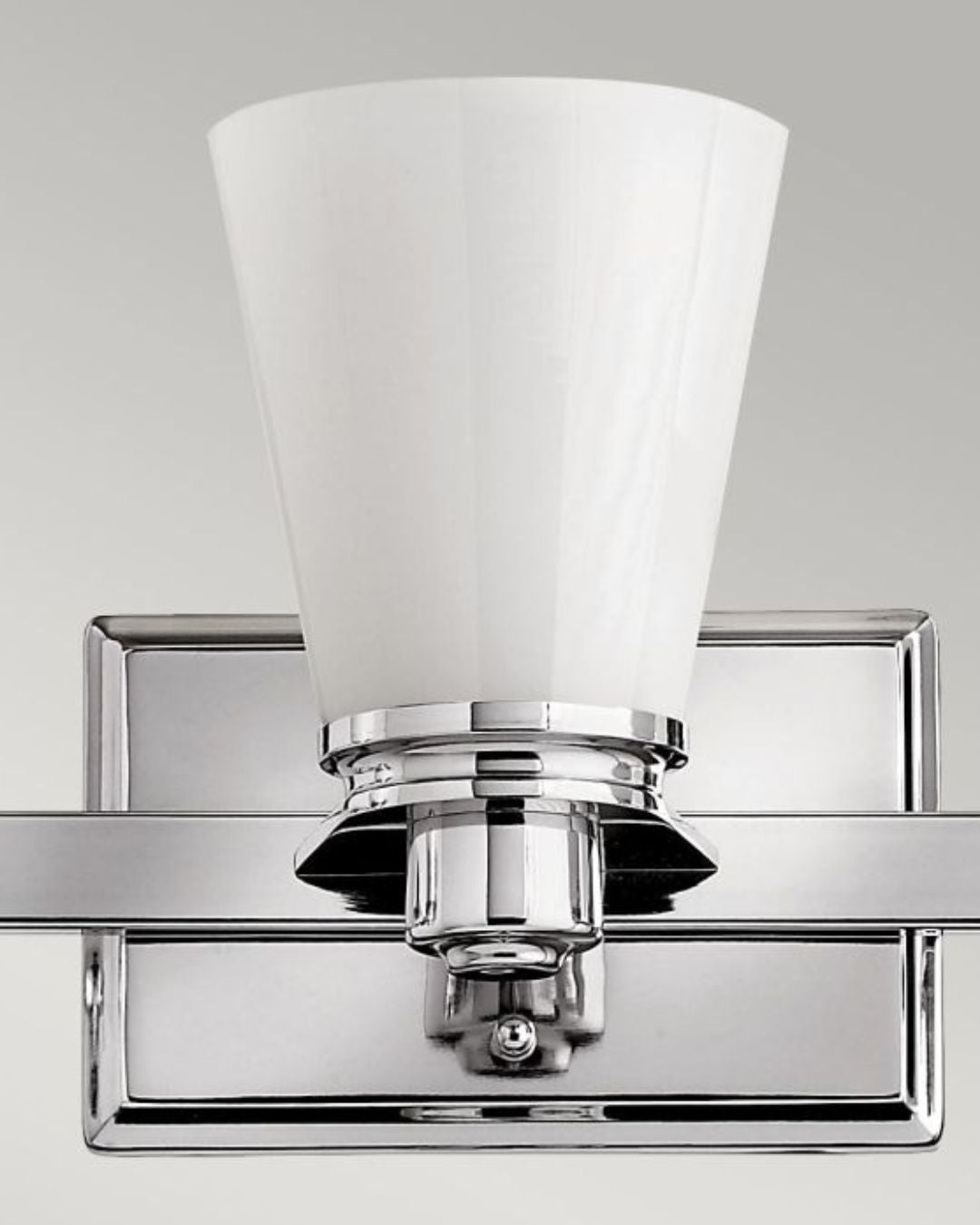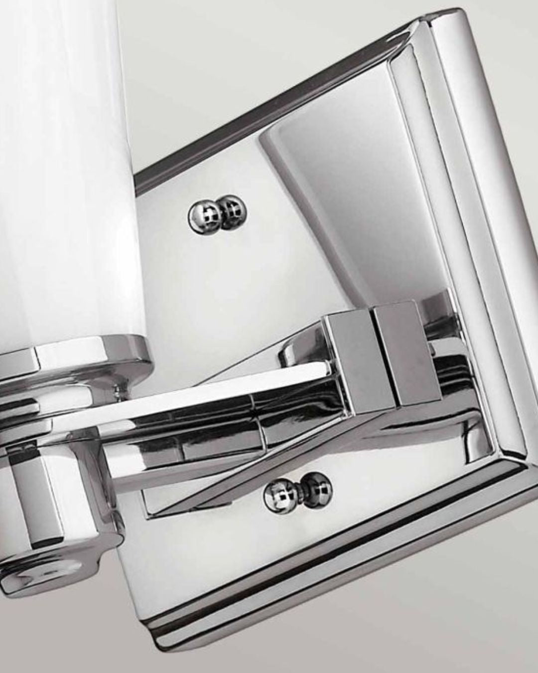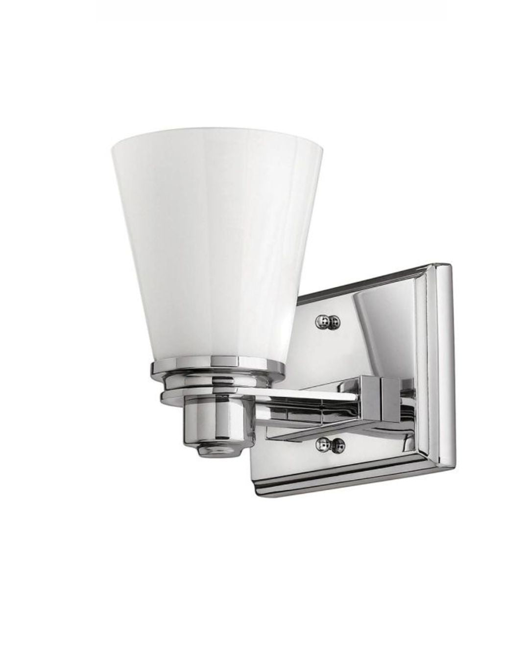 This Polished Chrome fitting's form is reflective of conventional lighting design. Characterised by its Opal Glass diffuser and sleek chrome accents this wall light enhances interior settings an is well suited with an IP44 rating for bathroom installation.