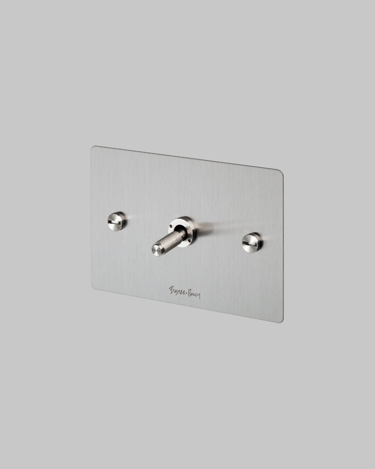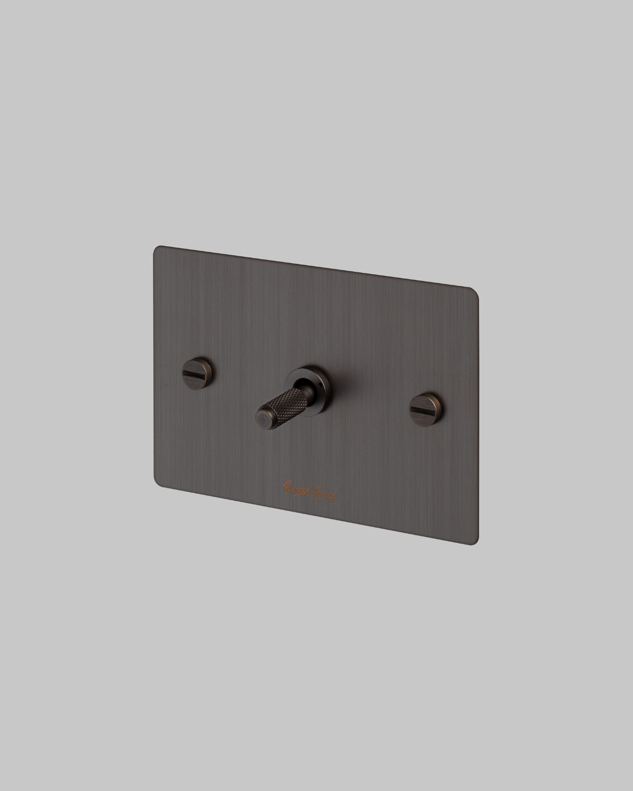 The 1 Toggle Switch is a high quality electrical fitting that can replace classic white switches to match the cabinet hardware of any interior. The 2 Way option comes with all features already assembled, ready for installation. The Retractive and Intermediate options come with separate modules that will need to be fitted into the switch prior to installation. Available in Brass, Steel, Black or Smoked Bronze, with detail kits available to create a unique combination of metal finishes.