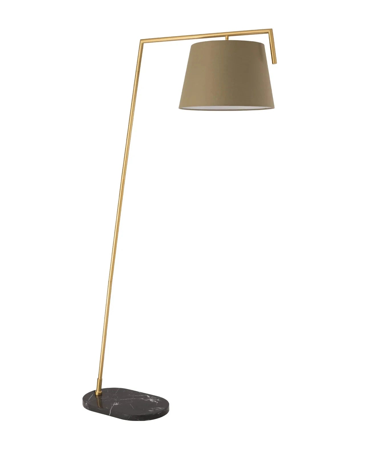 The Mid-Century Sage Marble Floor Lamp is a functional statement piece designed for open-plan living. A heavy black marble base provides stability for the off-centre reach of the angled brushed brass frame. The sage lamp shade adds a subtle, modern touch of colour that complements neutral contemporary interiors. Given its grand scale, this piece is particularly effective in high-ceiling homes, expansive living areas, or executive office space where visual impact is essential.