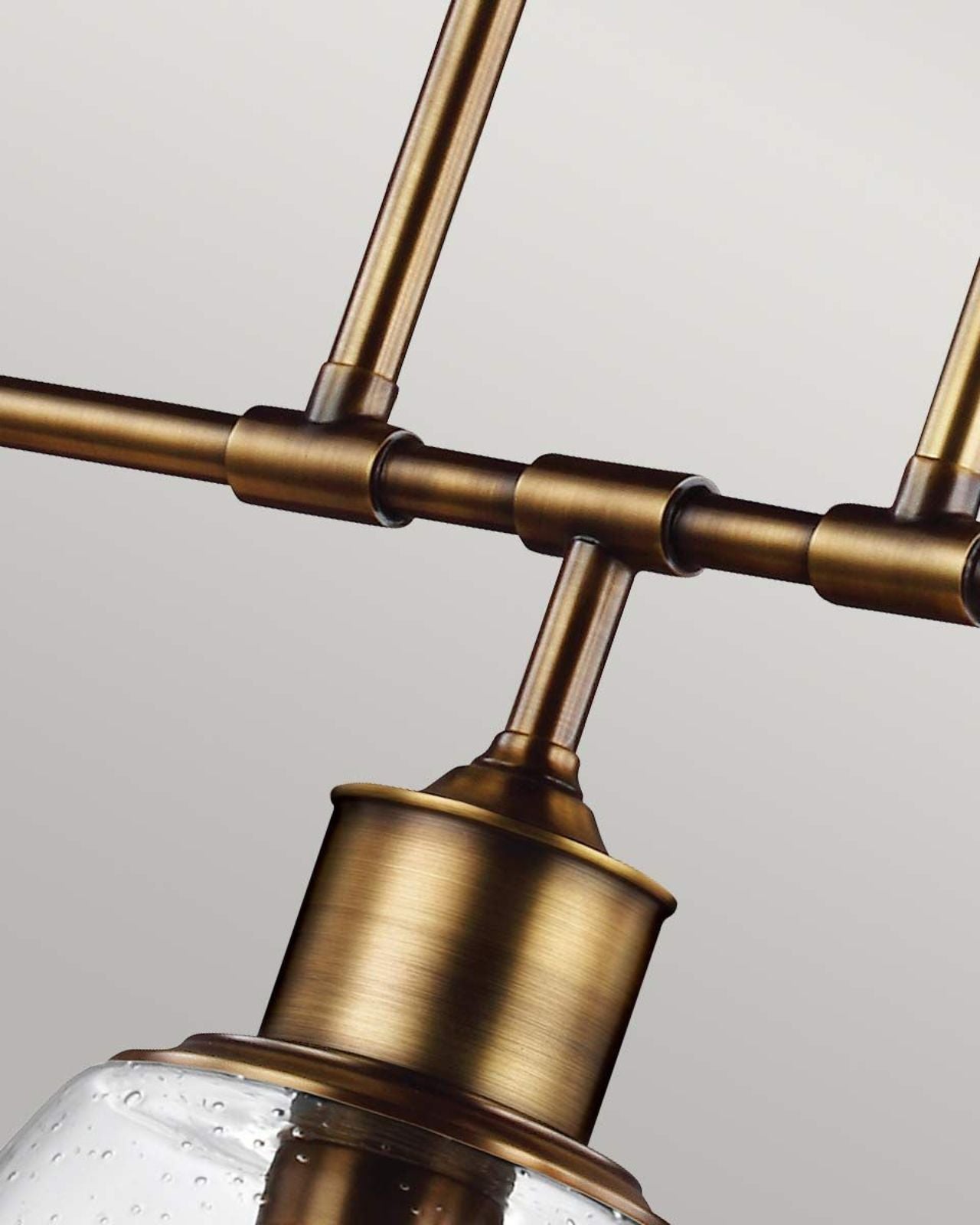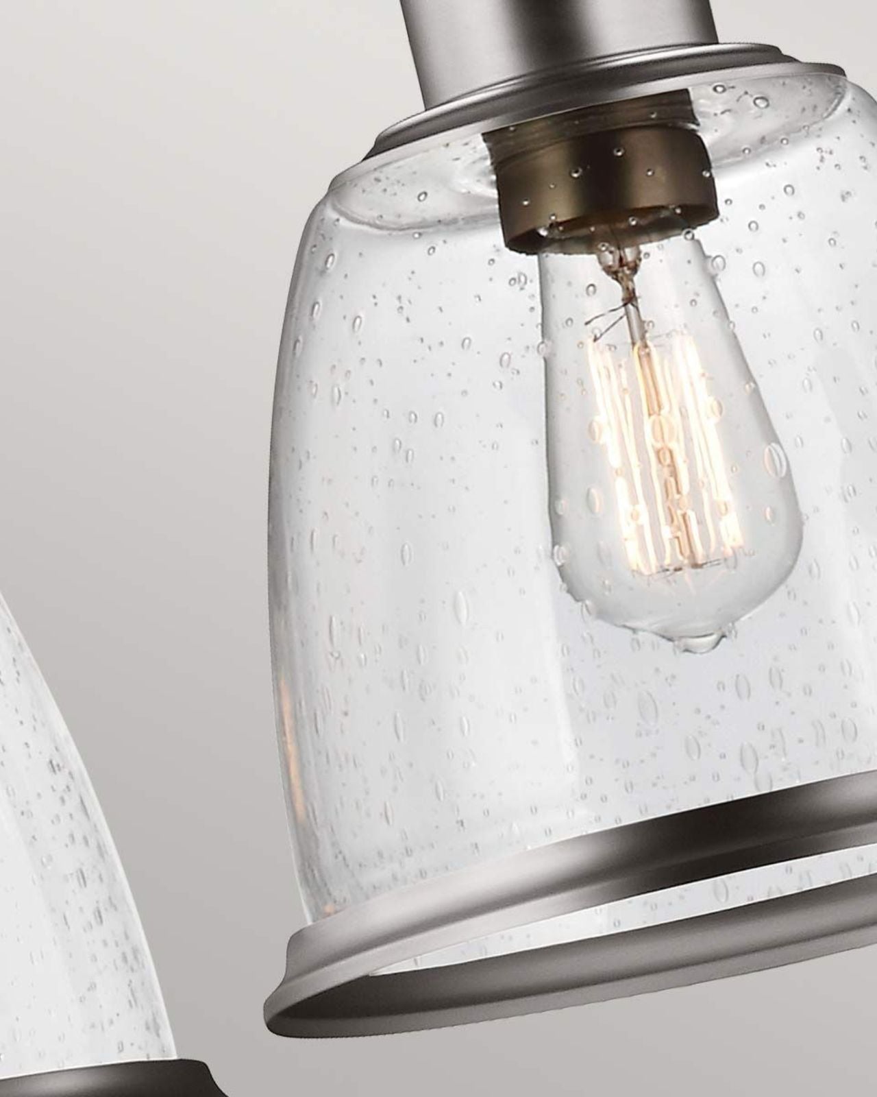 A bold modern design that creates a refined industrial ambience. This tri drop pendant fixture is available in an Aged Brass or Satin Nickel finish. Use this sophisticated light to enhance the atmosphere of your kitchen, dining area or in your restaurant/café.