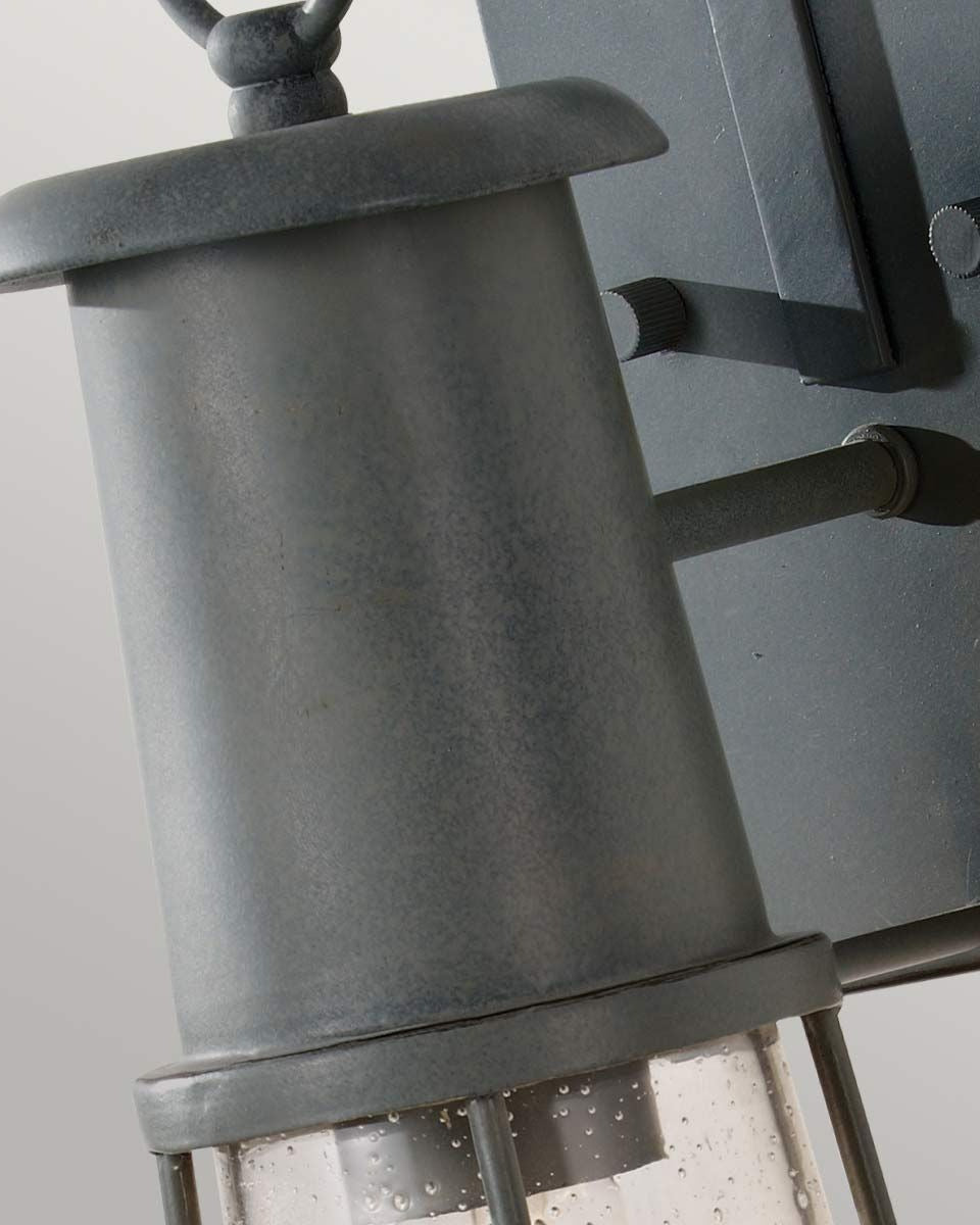 This vintage styled exterior wall light features a grey lantern with a clear seeded glass that appears to float from the base plate. Drawing inspiration from traditional harbour light fittings, this wall light's refined design provides a sophisticated look. Complementing traditional vintage, industrial or coastal styled exteriors this wall light will add character to your entryway.