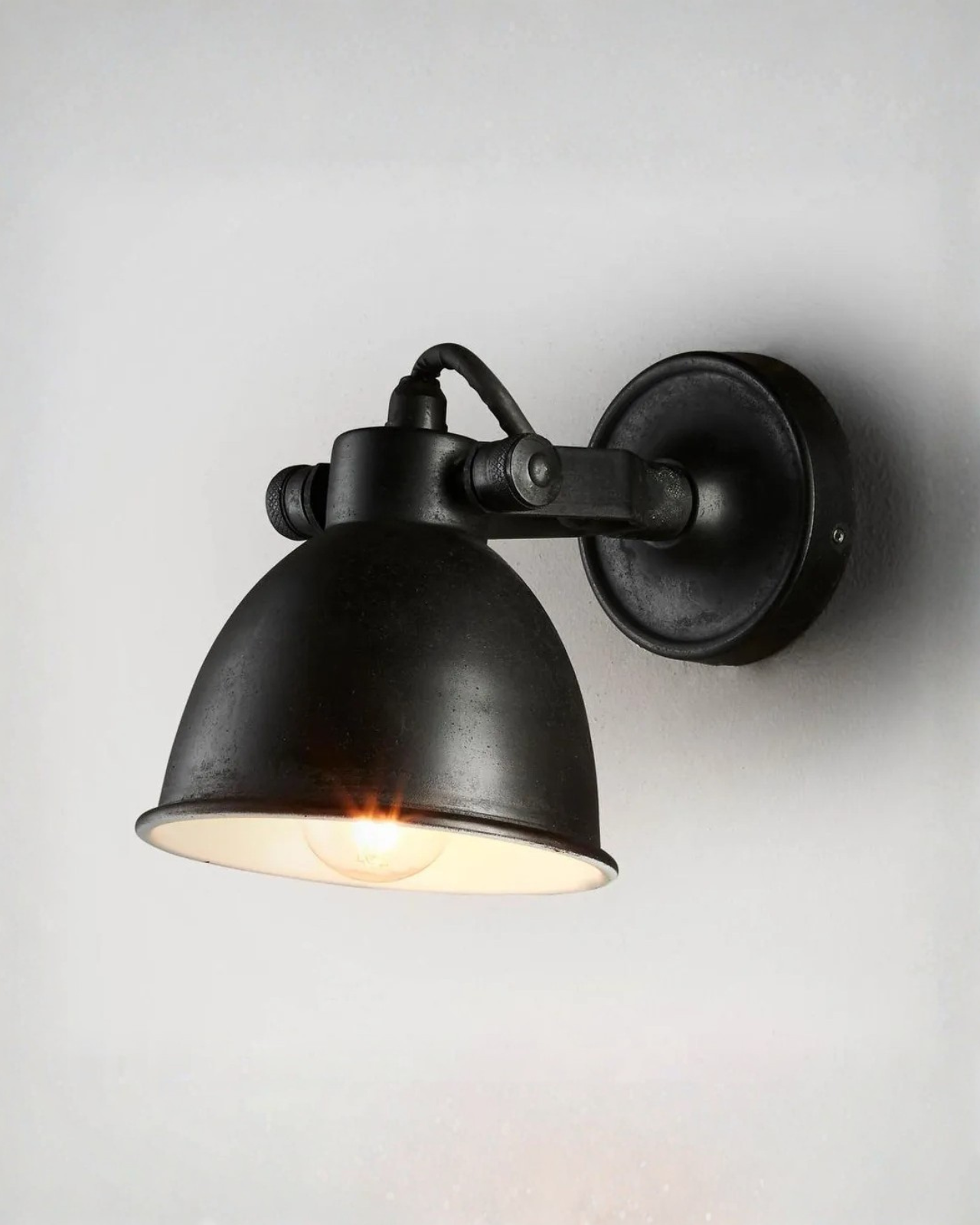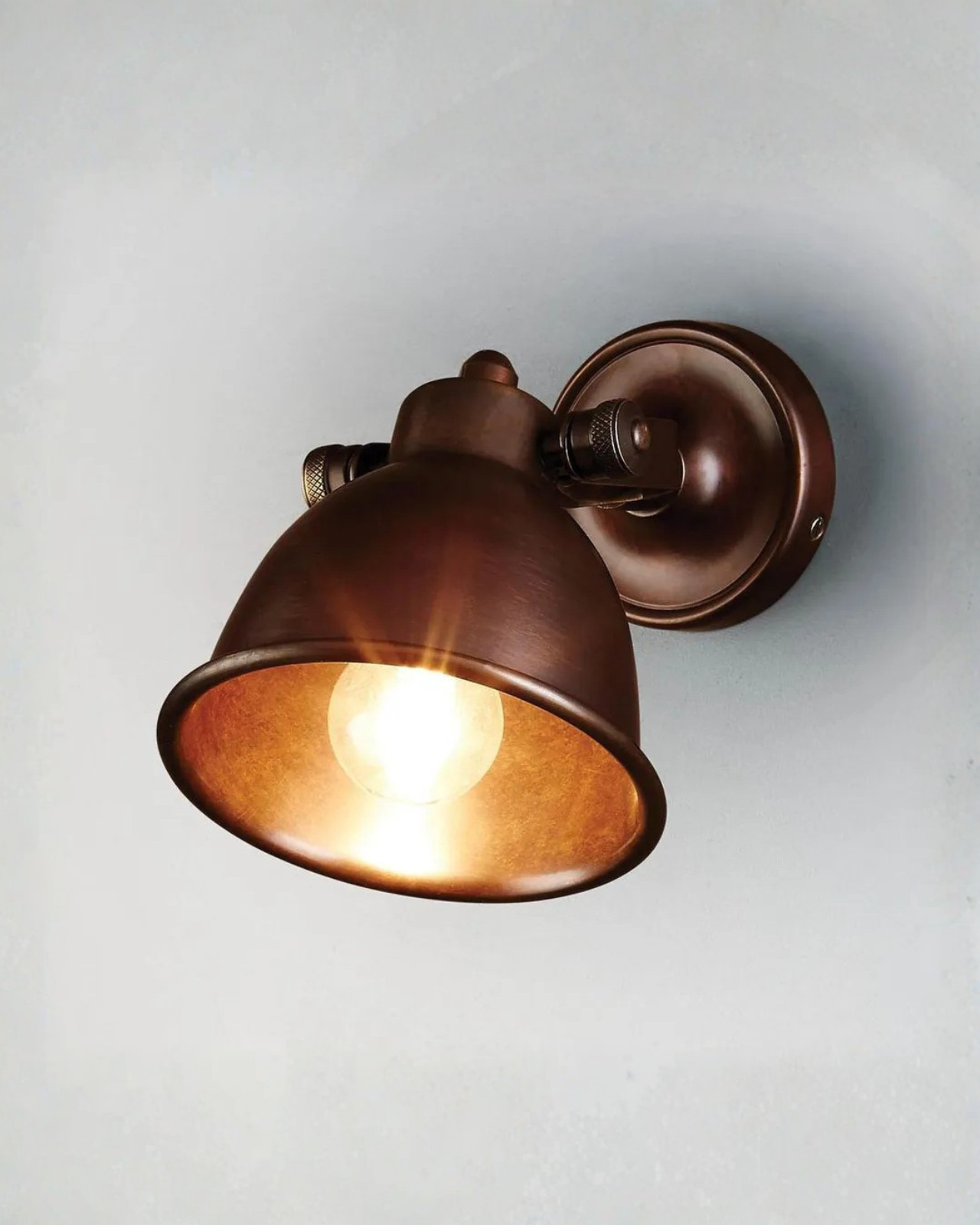 This industrial-style wall light is crafted from solid, anti-rust brass, making it both durable and long-lasting. Its versatile design allows the lamp head to tilt up and down while the supporting arm can swivel side to side, providing fully adjustable illumination. Ideal for living rooms, bedrooms, kitchens or powder rooms it works equally well as a focused reading light or a source of ambient lighting. The combination of robust construction and flexible positioning ensures both functionality and style in a range of interior settings.