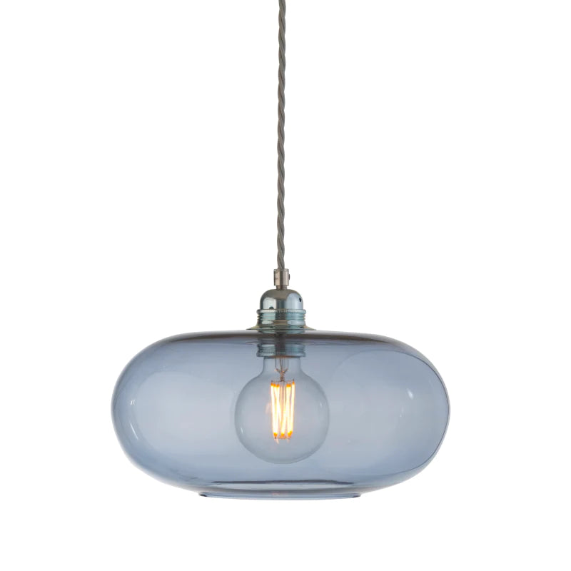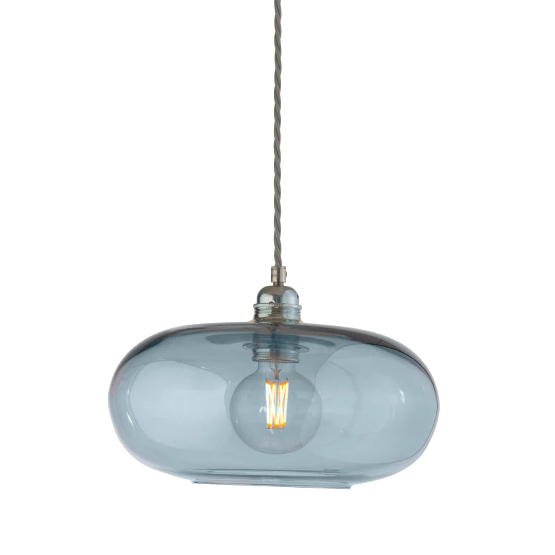 Blue tinted hand blown glass pendant