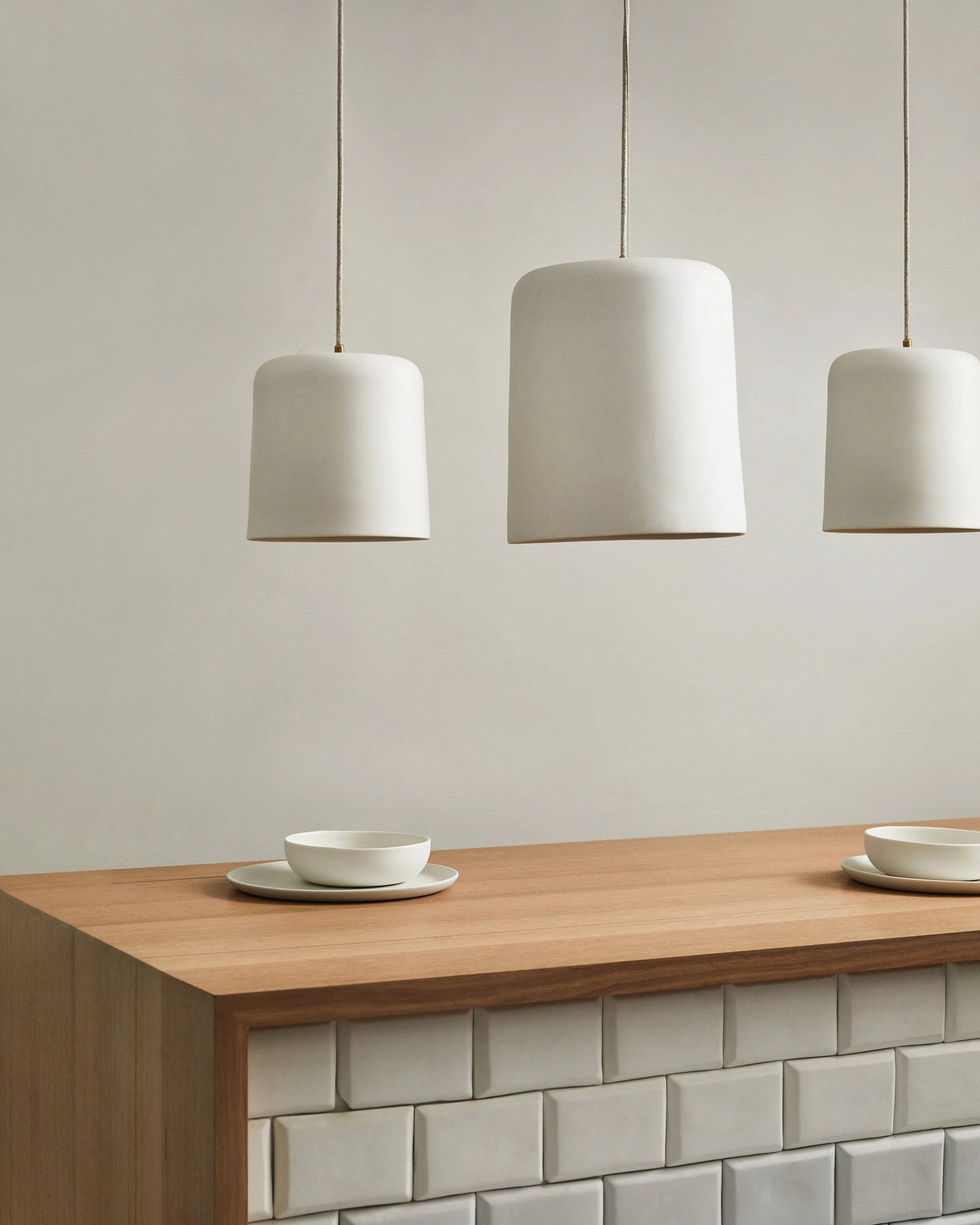 Handmade in Sydney from stained Australian porcelain, with finishes inspired by the hues of the evening sky, these soft pendants offer a warm, organic presence that enhances any space. Beautifully complemented by brass components, a matching ceramic ceiling rose, and 2m of cloth cord, they bring both elegance and functionality. Designed by Studio Enti, these pendants are ideal for kitchen or bedside lighting, providing a gentle, ambient glow that suits a variety of interiors.
