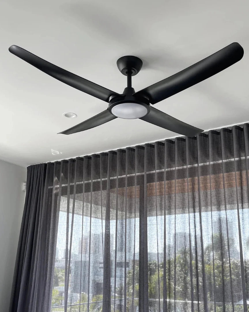 Modern Ceiling Fan | FlatJET DC | ThreeSixty Black 4 Blade With Light