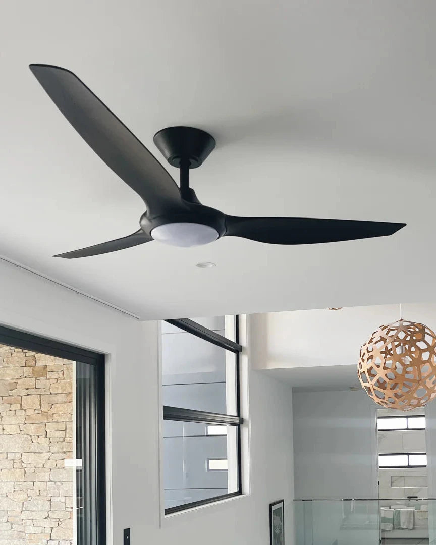 The aerodynamic polymer blades are built for all-weather durability, featuring UV protection and sound-dampening technology for quiet, long-lasting performance. Designed for a range of climates from humid to coastal this fan offers a powerful yet peaceful breeze, ideal for medium-sized rooms such as bedrooms, living areas, and covered outdoor spaces.