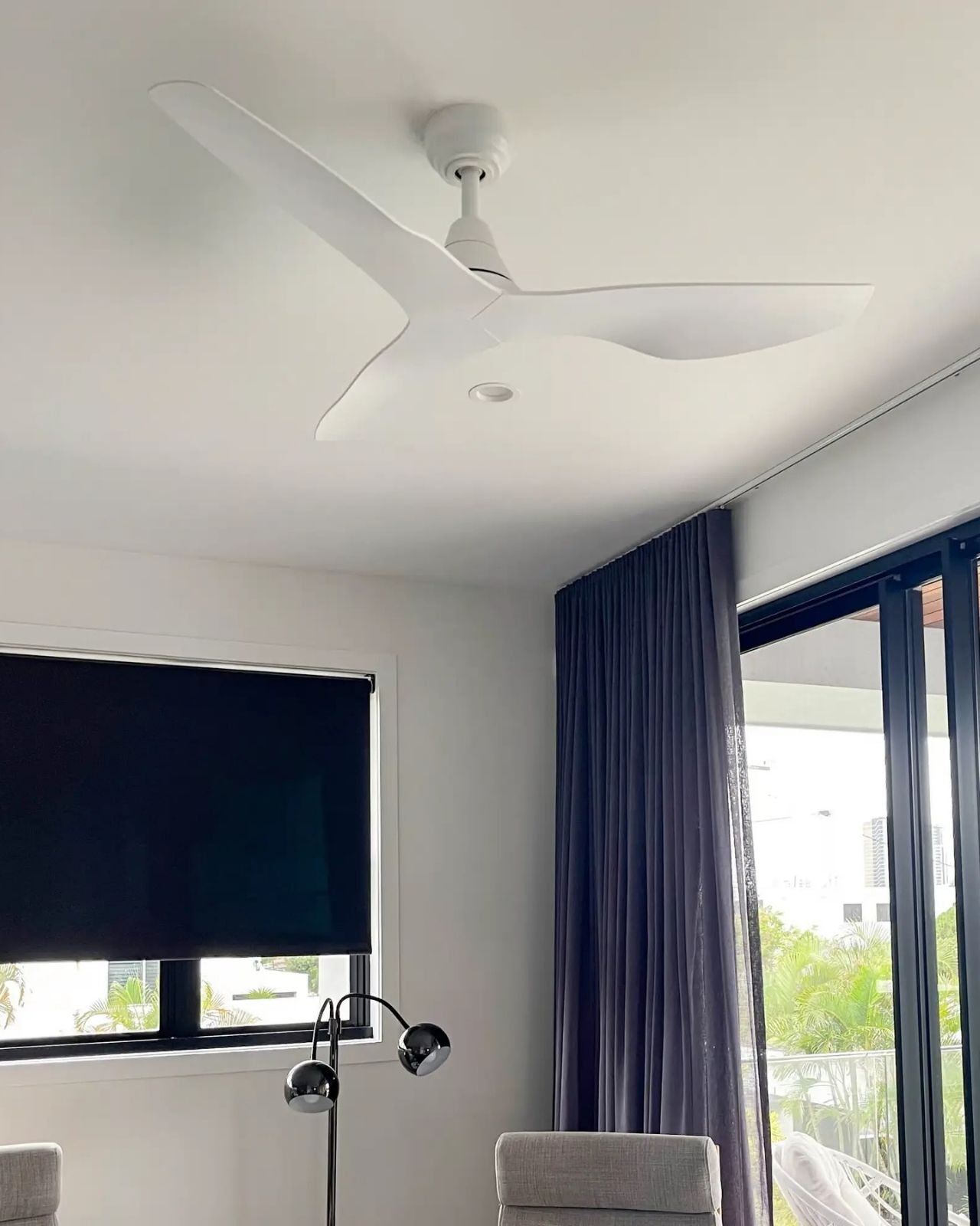 The Simplicity Three Blade DC Ceiling Fan is perfect for modern and contemporary decors. Choose between a black or white motor along with a variety of blade finishes, and two different sizes. Features a 6-speed remote control with summer/winter modes and fan-off timers. It has a choice of a 1140mm or 1320mm blade span and is a discreet cooling solution that won't overpower the interior colour scheme. Comes with the option of an 18W light kit.