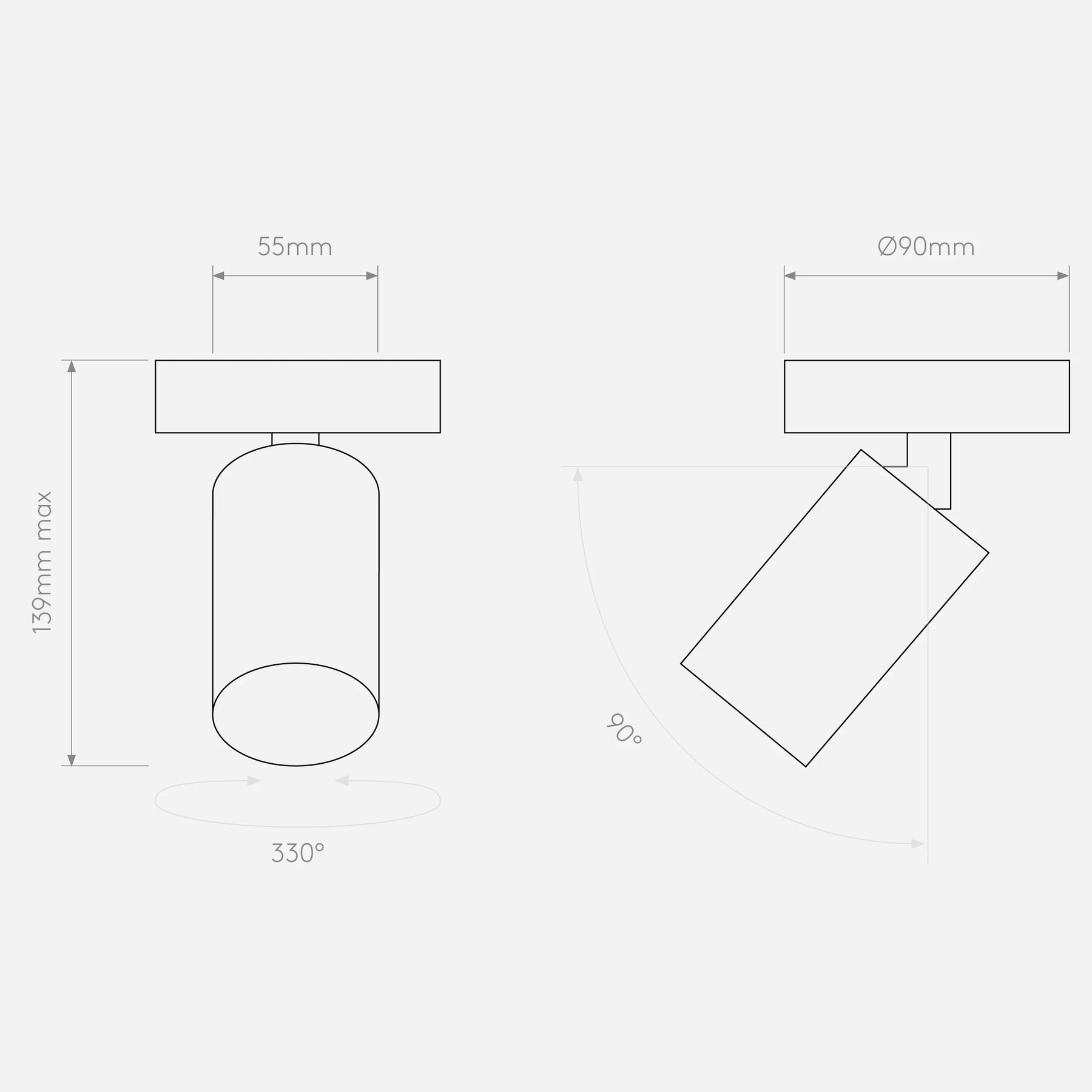 Made from aluminium with a matt white or black finish, this light is beautifully minimalist with high levels of quality and precision. LED dimmable and adjustable, this cylindrical modern spotlight can be wall or ceiling mounted, rotated up to 330 and tilted by up to 90 degrees.