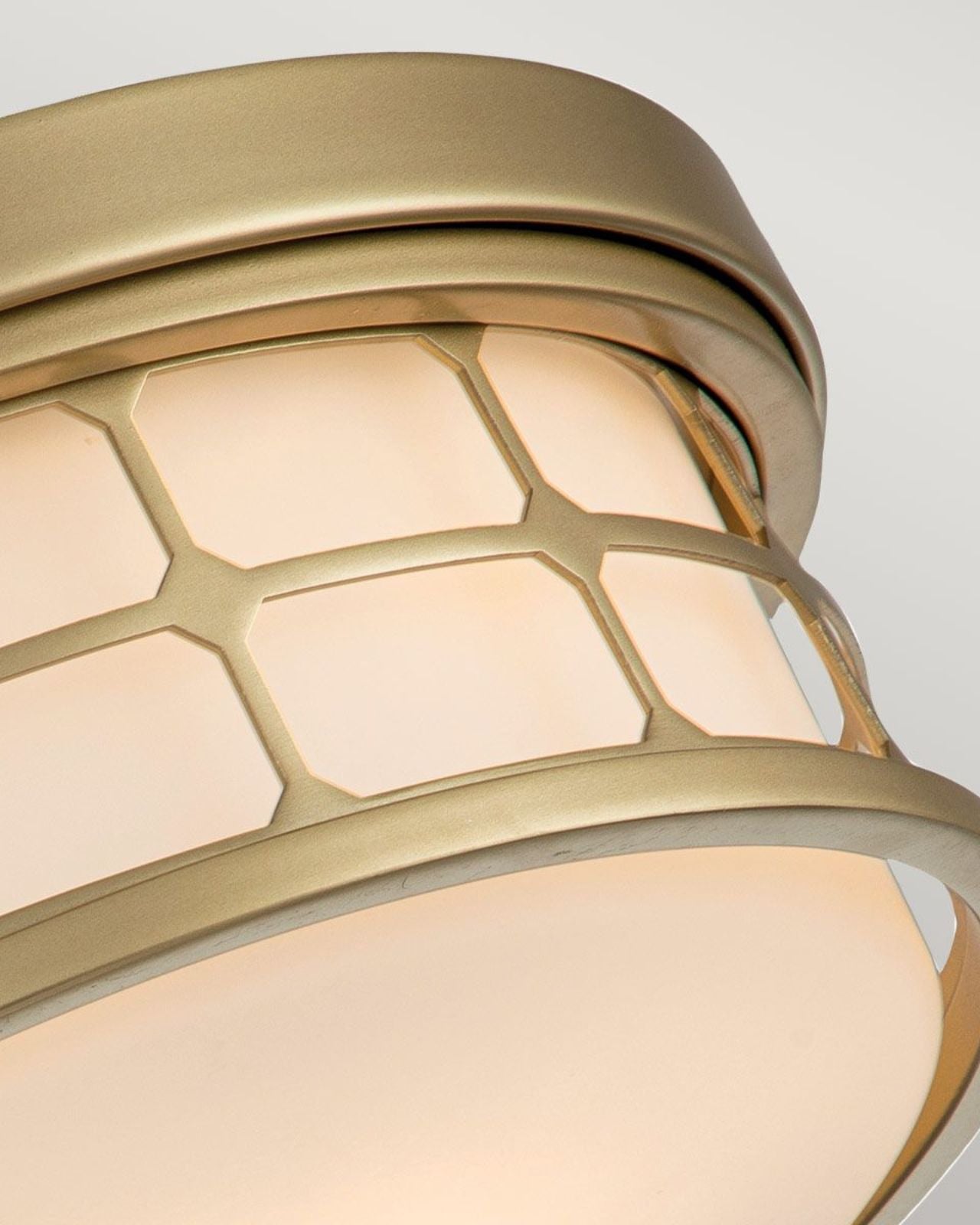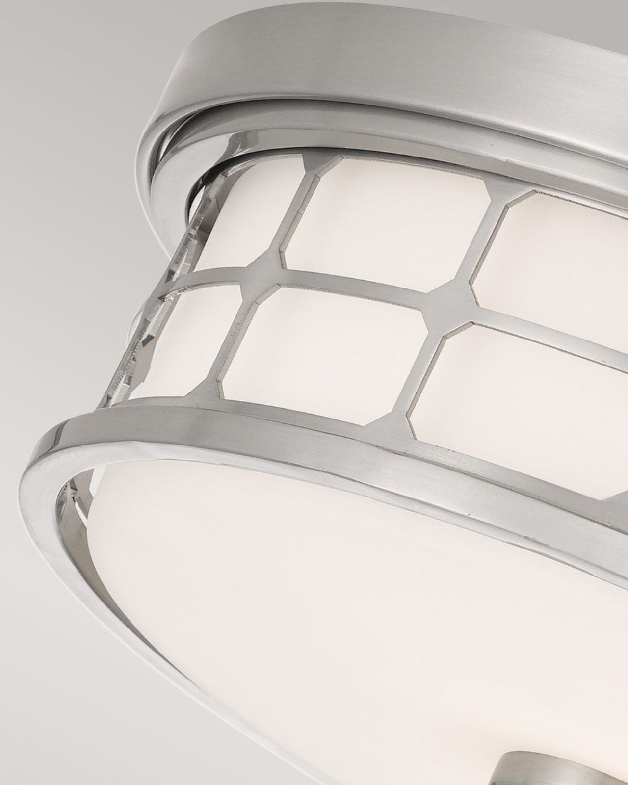 A timeless addition to any space, the Ornamental Flush Ceiling Light features intricate detailing in a steel frame. Available in polished nickel or brass, the frame offers a choice between sleek modernity or classic warmth. The light's frosted glass shade is designed to diffuse light evenly, creating a soft and inviting ambiance. Perfect for bathrooms, dining spaces, or bedrooms, this fixture blends vintage sophistication with functional design.