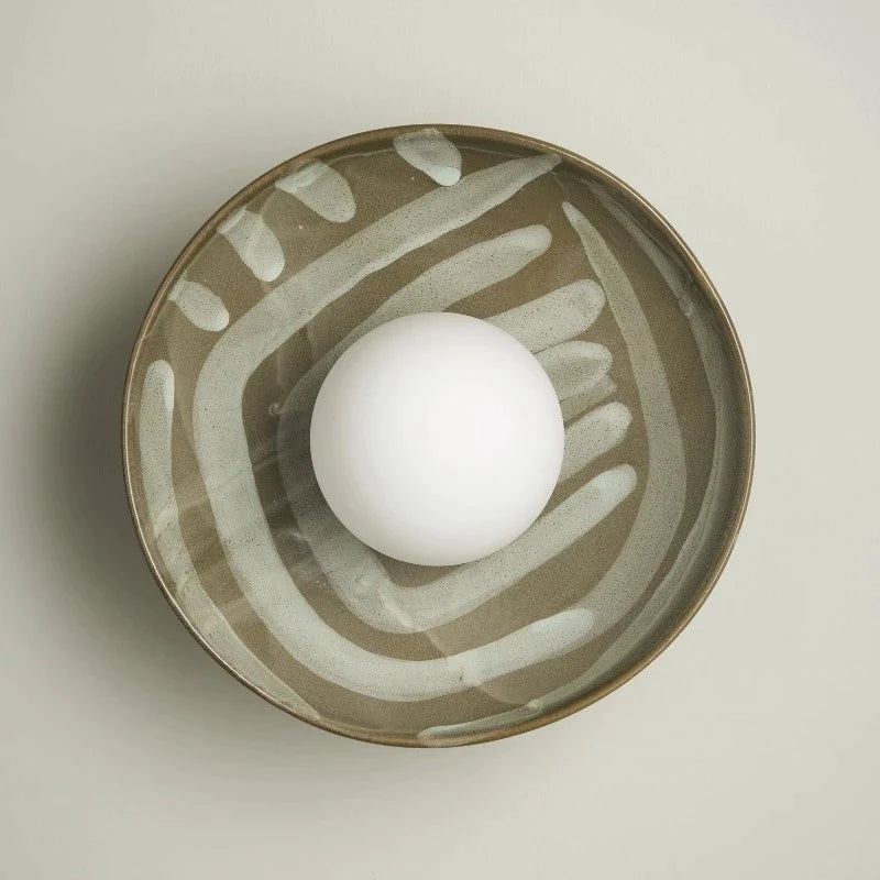 Designed and Handcrafted in Melbourne, Australia this simple ceramic dish wall light is available in a variety of hand-glazed finishes. Its minimalistic dish frames a central opal glass diffuser that houses a G9 LED, emitting warm diffused light suited for hallways, living areas and bedrooms. Its wide range of glaze finishes and smooth rounded shape lends itself to both modern and contemporary styled spaces. Due to the handmade nature of this wall sconce, each piece is infused with slight variations making no two alike and perfectly unique. Made from Australian stoneware each piece is designed to last a lifetime.