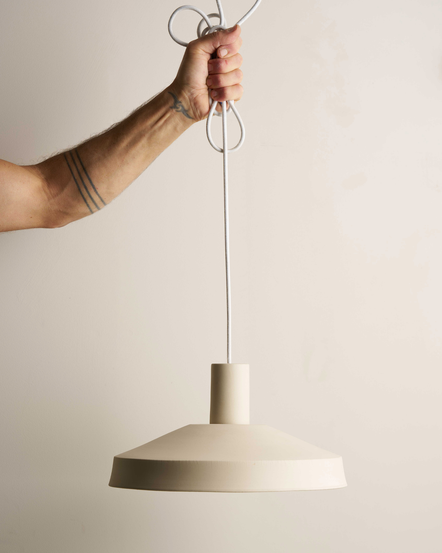 Designed and handcrafted in Melbourne, the Handmade Two-Form Stone Pendant is distinctively cast in two forms, creating a unique hat structure for support and shade. Available in two neutral shades, Bone or Stone, this beautifully simplistic fixture nods to sophisticated industrial lighting with a ceramic flare. Due to the handmade nature of this pendant, each piece is infused with slight variations making no two alike and perfectly unique. Made from high-quality Australian stoneware each piece is designed to last a lifetime.