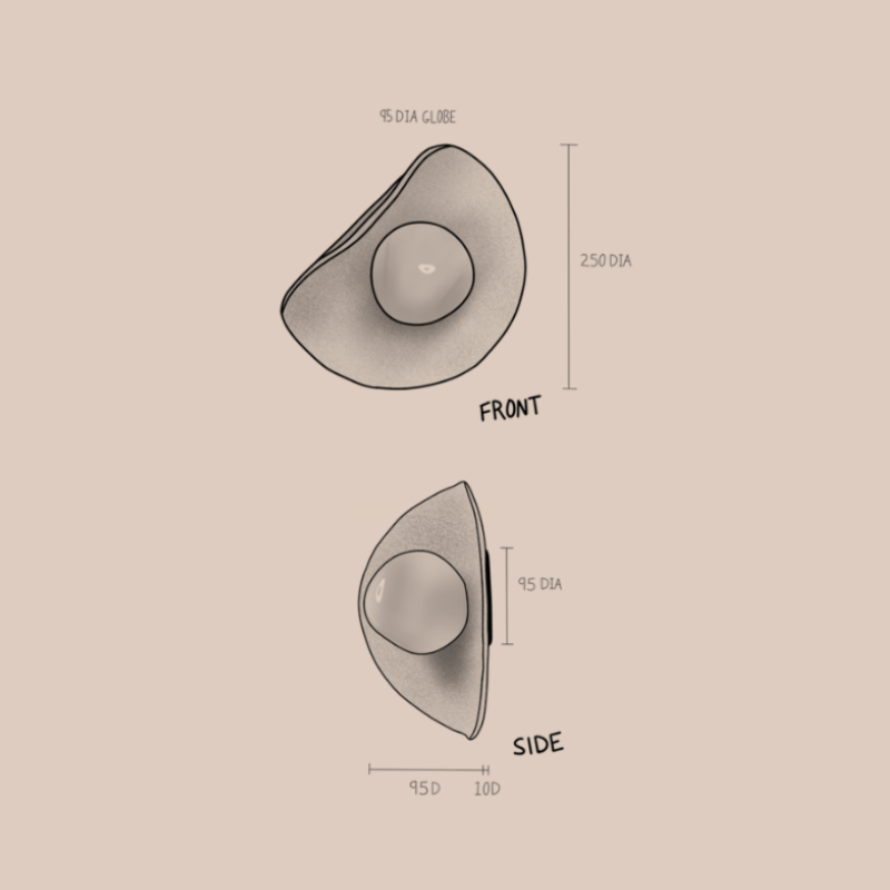 Due to the handmade nature of these wall lights, you might expect to find slight variations in size, glaze finish and form including unique beauty spots and natural inconsistencies. This is what gives each wall light individual lasting value and is not considered as an imperfection or fault.