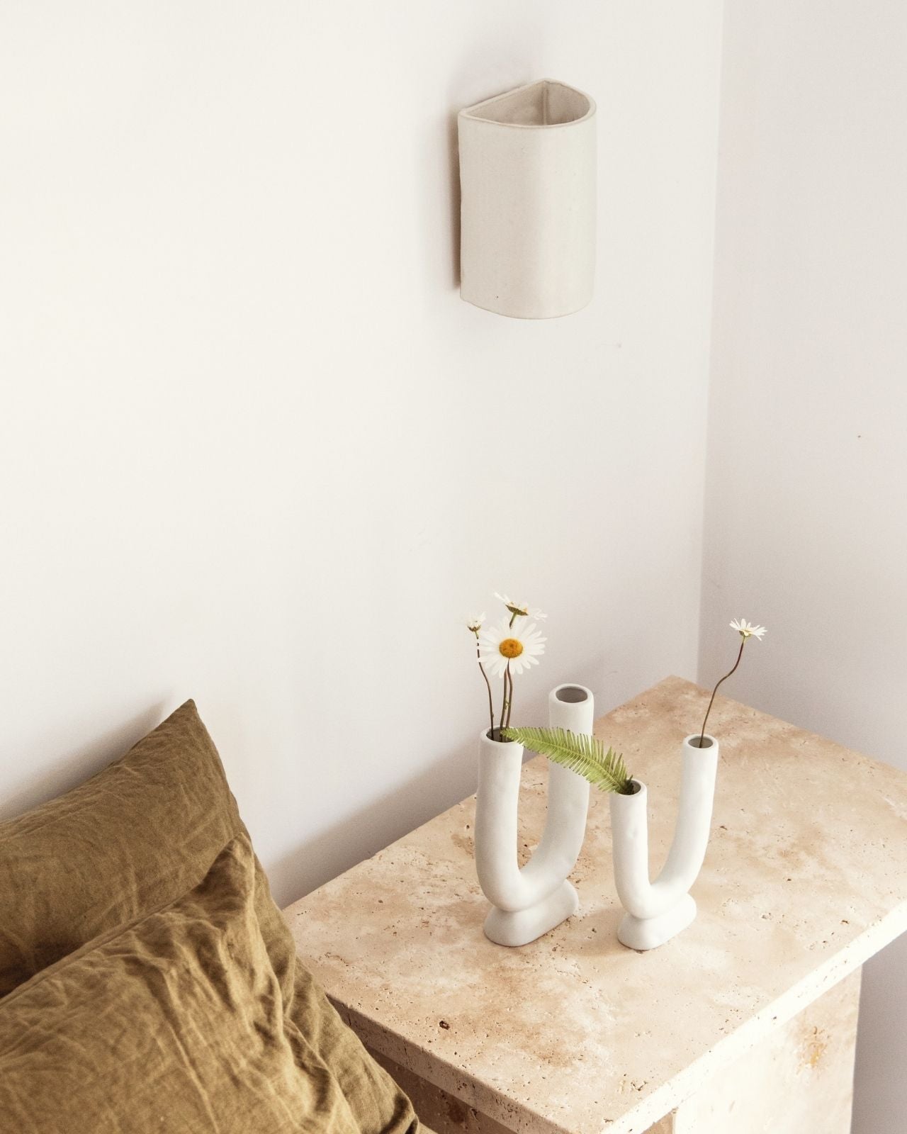 Handmade Ceramic Cylindrical Wall Light | Dawn In a bedroom