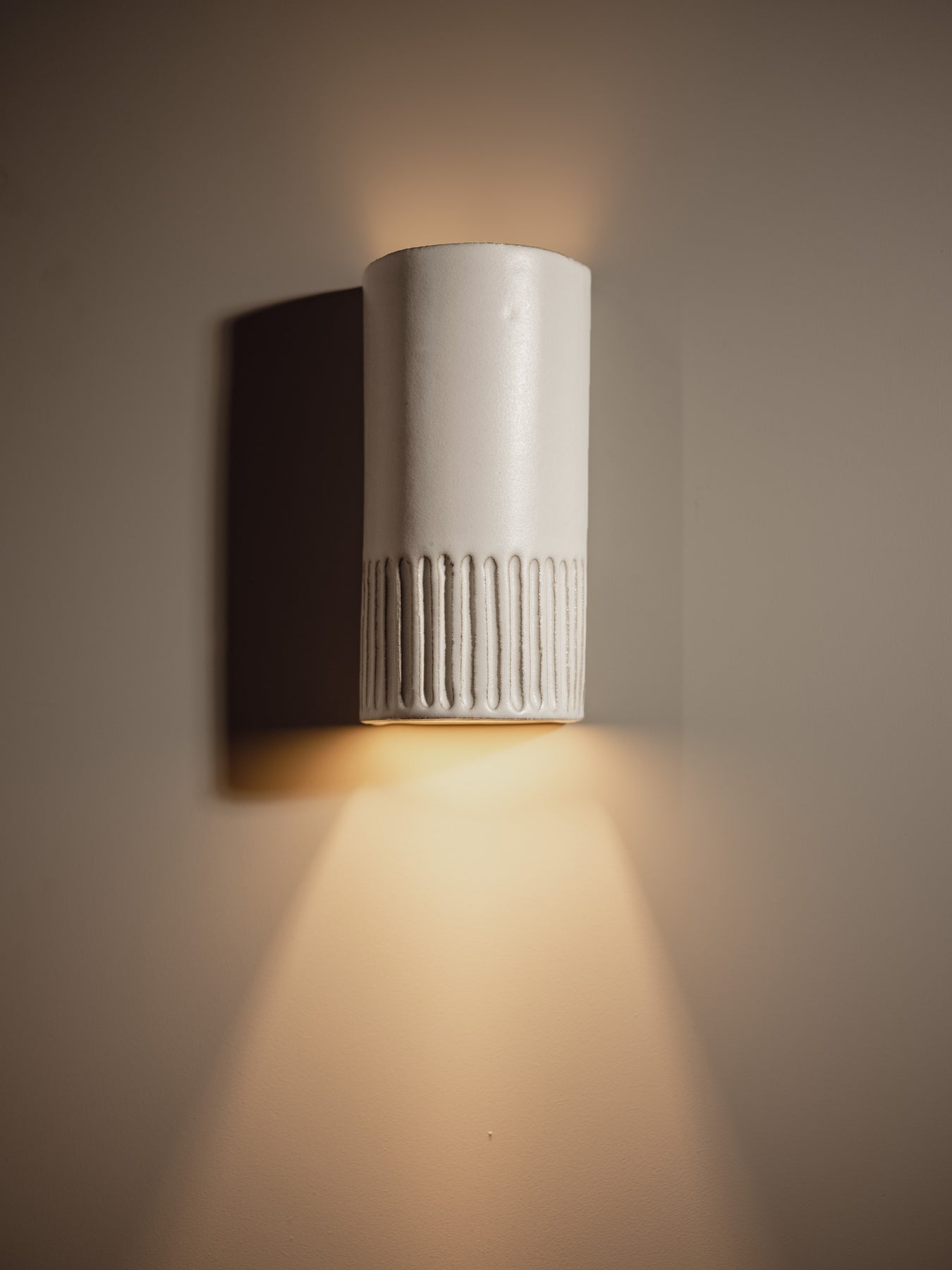 Handmade Ceramic Indented Wall Light | Day Tall Front