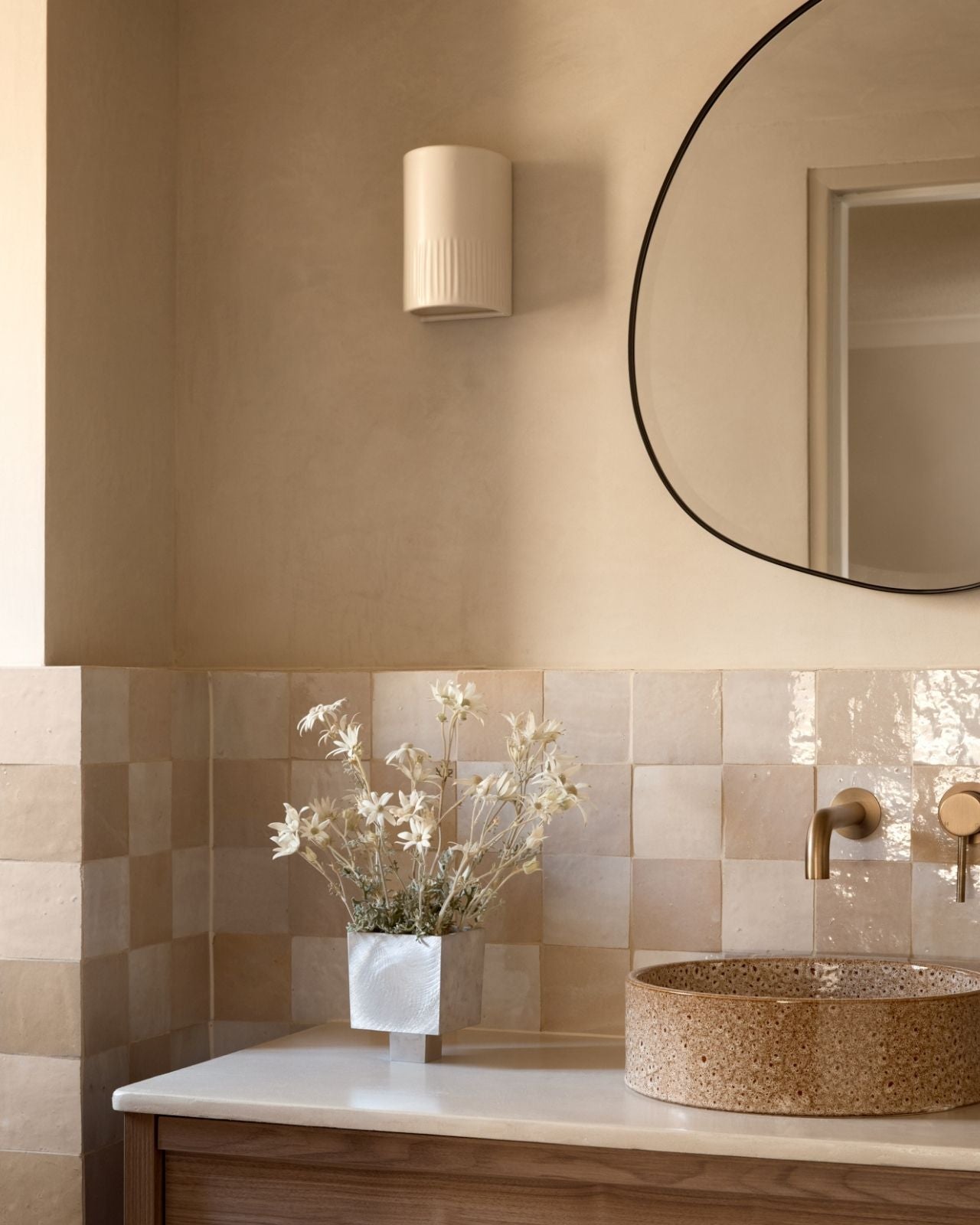 Handmade Ceramic Indented Wall Light | Day Tall In a powder room
