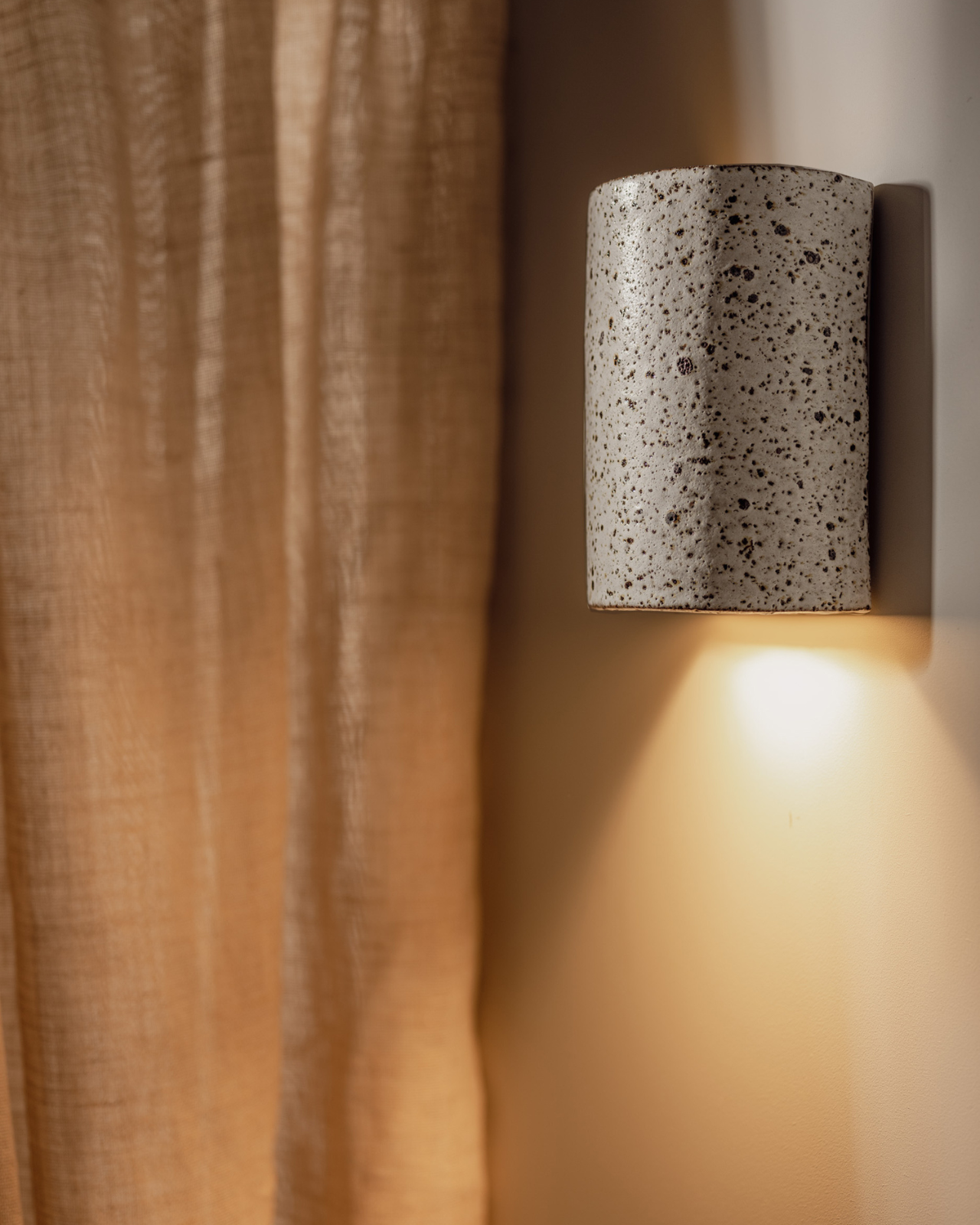 Handmade Speckled Ceramic Wall Light | Dusk In a bedroom