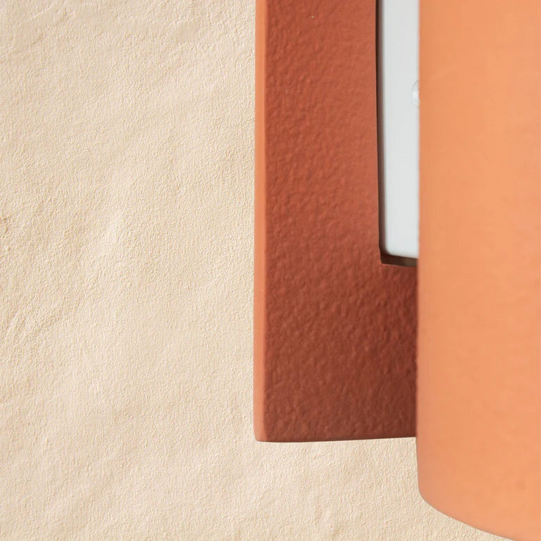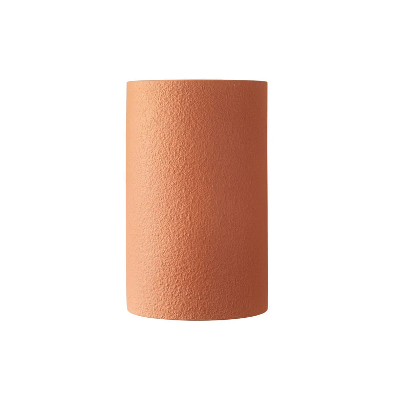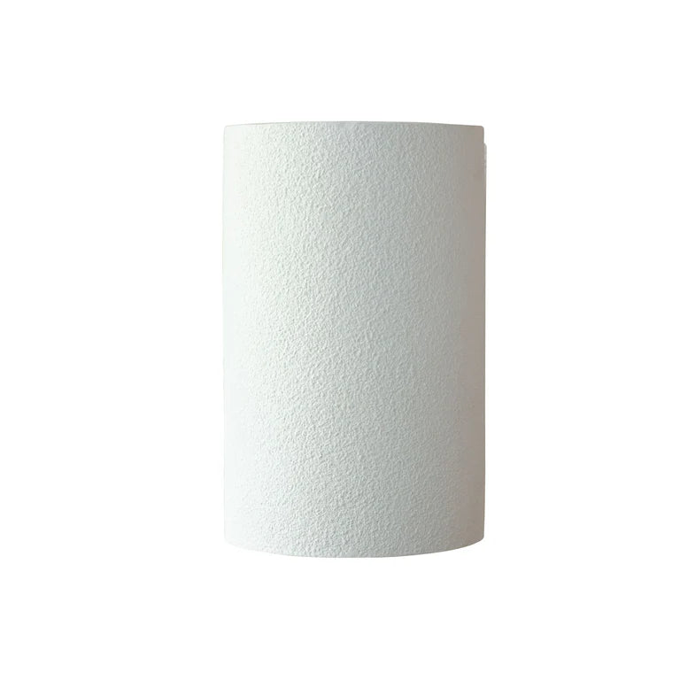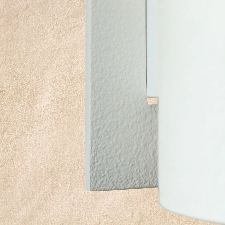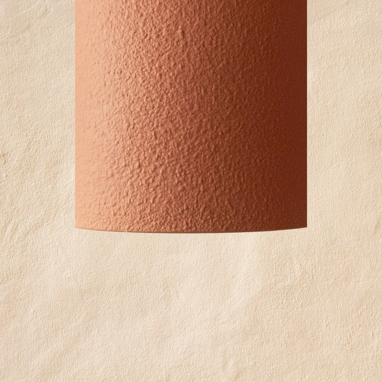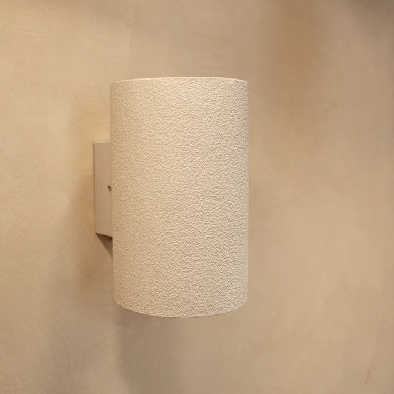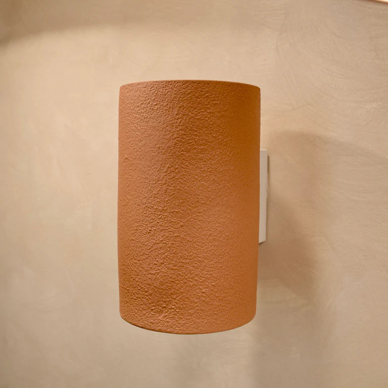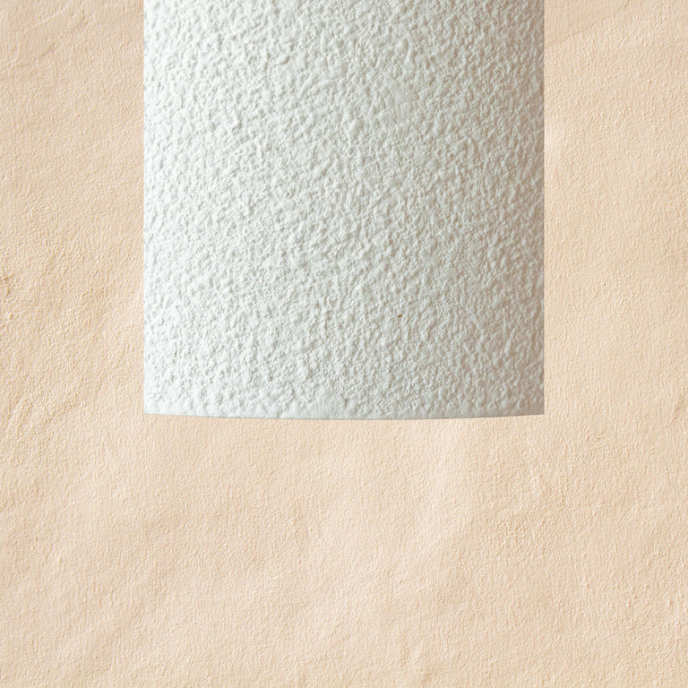 The Textured Cylindrical Wall Light is a collaboration between mechanisation and craftsmanship. This design utilises clay printers and hand-carved moulds crafted by skilled artisans in Southern Spain. The result is a textured finish that embodies nature and contemporary technology. Choose between a simple white backplate or a ceramic frame around the white backplate that matches the fitting's finish. With an IP rating of IP44, install in bathrooms or exterior protected areas.