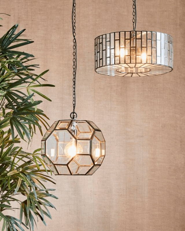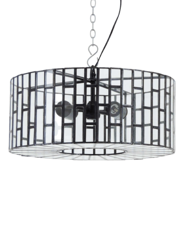 Modern Mid-Century Black Drum Chandelier | Lighting Collective | pendant together with a geometric chandelier in a beige interior