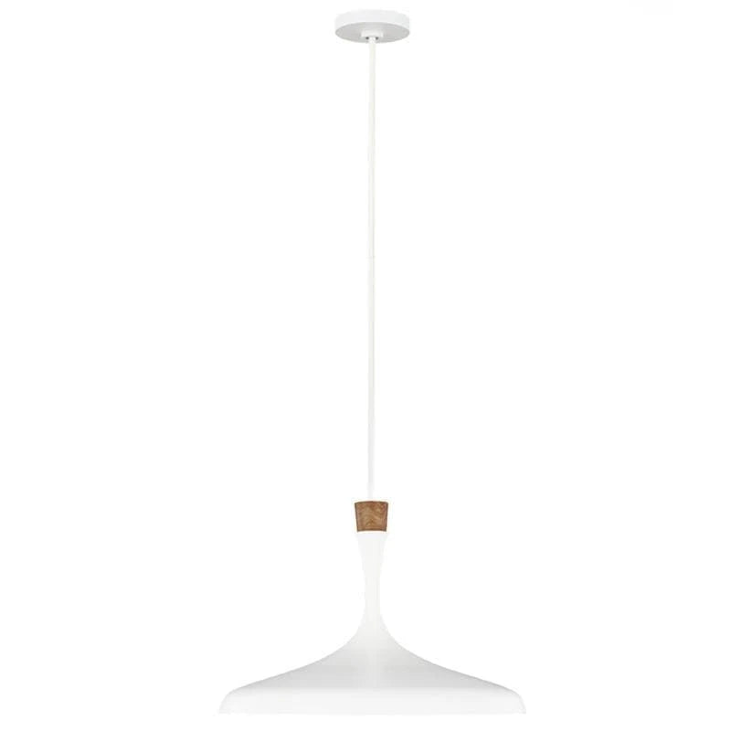 This pendant light blends urban and rustic elements with its natural wood crown detail and matte white metal shade. A modern interior light that will complement a Scandinavian or Mid-Century Modern style space. Perfect to be hung over your kitchen bench, dining table or living room.