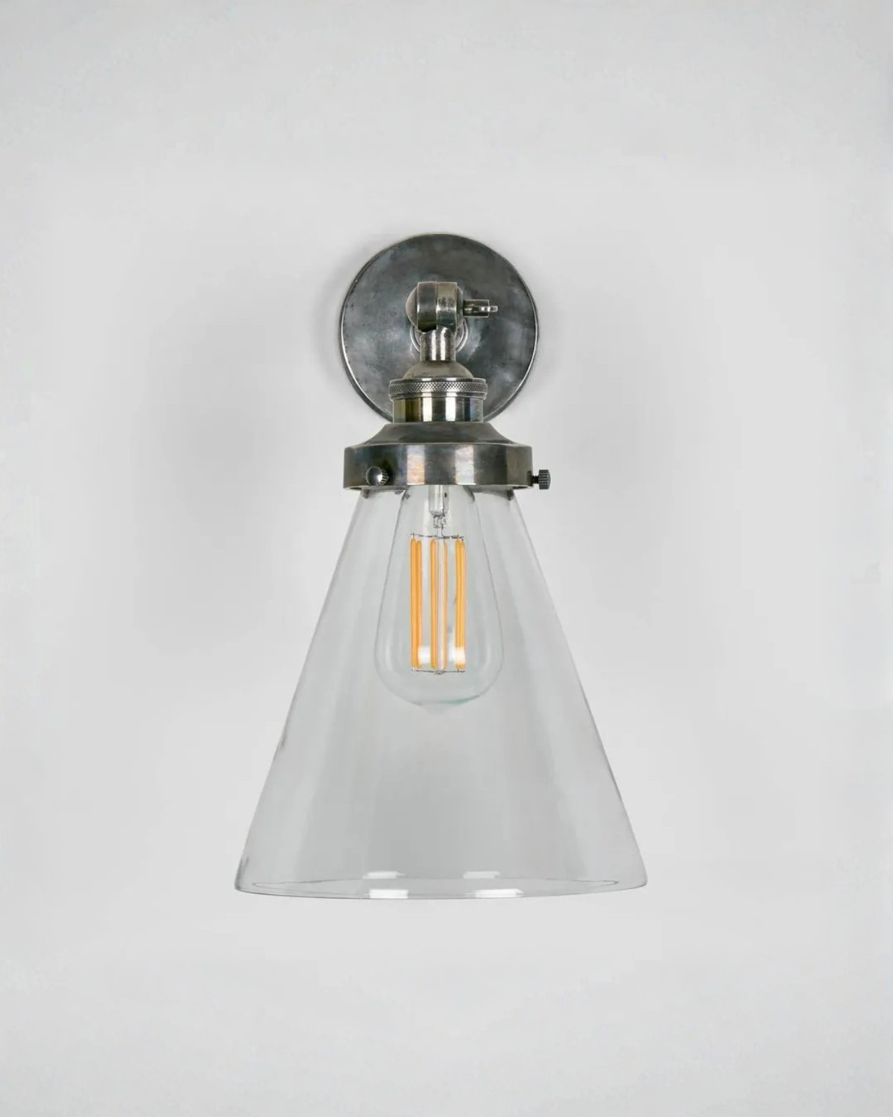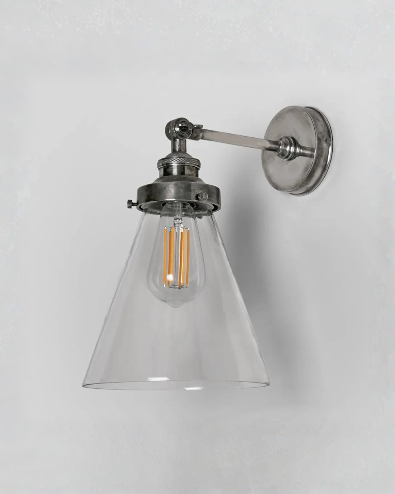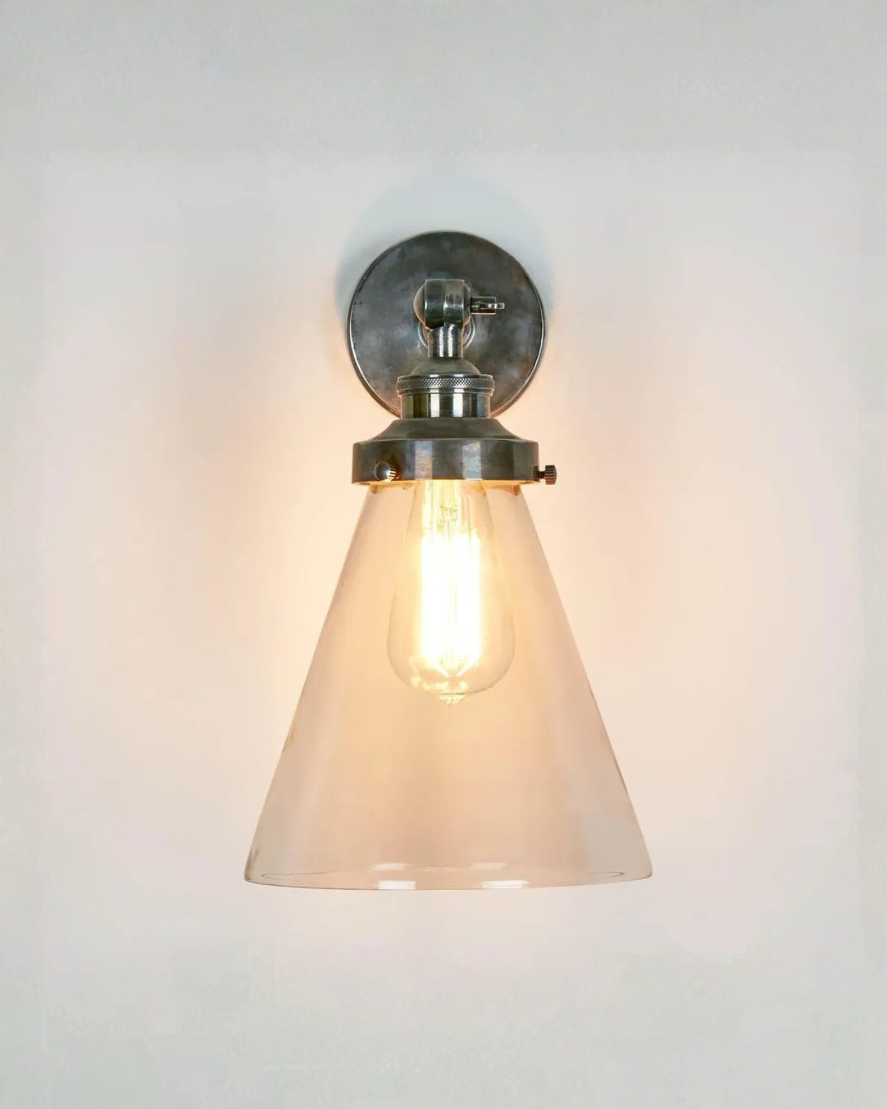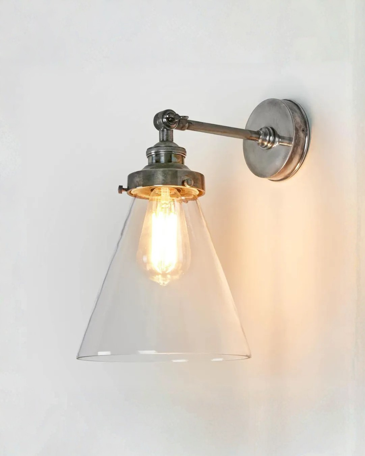The Vintage Industrial Antique Wall Light features a refined, timeless design with a convex glass shade and dark brass or silver finishes. Crafted with attention to detail, it evokes the character of classic industrial lighting while suiting a variety of modern and traditional interiors.