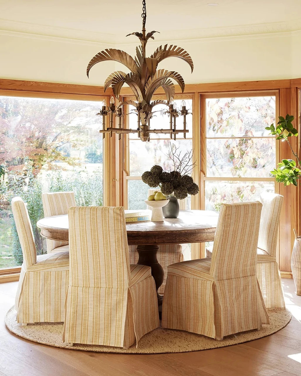 Coastal-Luxe Palm Chandelier over a dining table up close