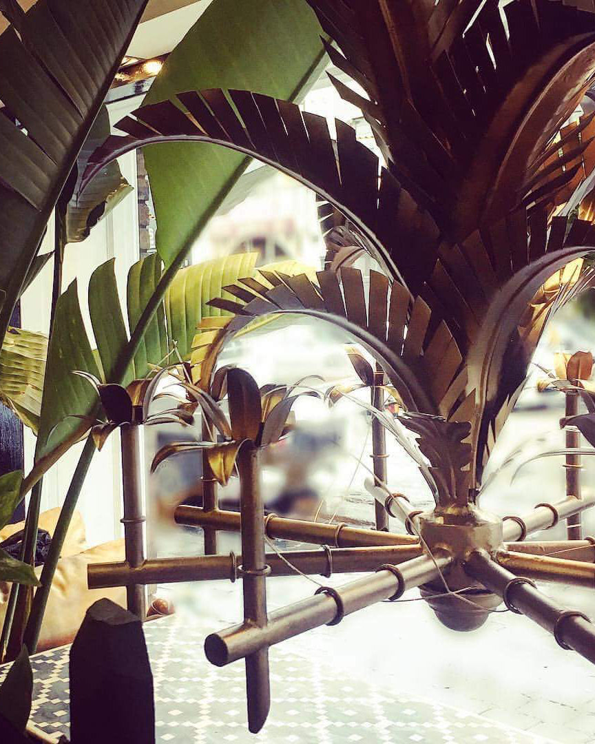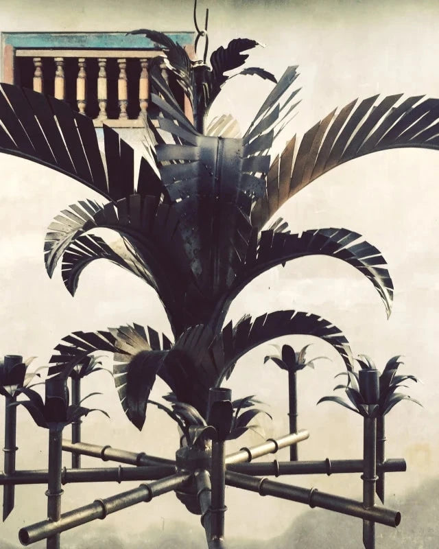 This eclectic chandelier draws inspiration from palm trees and bamboo for a stunning coastal-luxe statement.